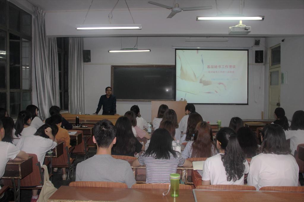 2018年5月3日晚,安康市财政局办公室秘书张宏亮应邀为公司秘书学专业员工做了题为“基层秘书职业与工作漫谈——我对秘书工作的一点体会”的专题讲座。本讲座为秘书学专业职业发展与创新创业教育类课程“行业企业问题讲座”的最后一讲。