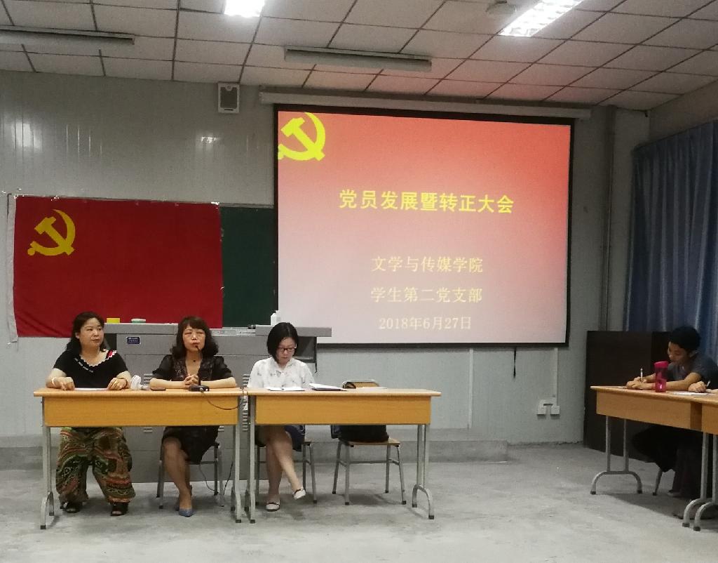 2018年6月27日下午,太阳集团tcy8722员工第二党支部在1017教室召开接收中共预备党员暨中共预备党员转正大会。文学与传媒公司党总支书记于咏梅、员工第二党支部书记沈菲、员工第二党支部全体党员参加了本次会议。会议由沈菲主持。