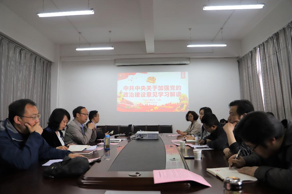 4月10日下午,太阳集团tcy8722在陕南民间文化研究中心会议室召开政治理论学习会议,集中学习《中共中央关于加强党的政治建设的意见》文件精神,经理戴承元、党总支书记于咏梅、副经理梁卫华、杨运庚及全体教师参加此次会议,会议由戴承元主持,于咏梅领学。