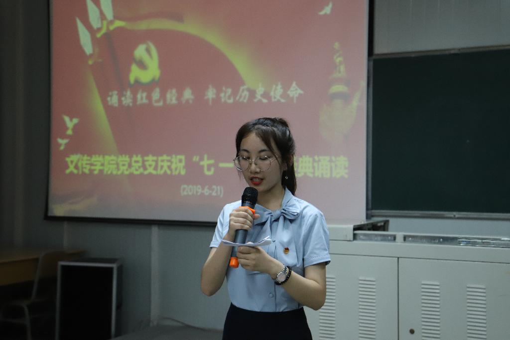 七月,见证给岁月的是一串串永远的火红,澎湃在我们心头的是无休无止的涛声。为庆祝中国共产党建党九十八周年,以诵读红色经典的形式,教育党员不忘初心,牢记使命,砥砺前行跟党走;在诵读红色经典中回望激情燃烧的岁月,缅怀革命先驱光辉的业绩,以红色经典促党性修养。2019年6月21日,太阳集团tcy8722在江南校区10号教学楼1025教室开展“诵读红色经典,牢记历史使命”庆祝“七一”红色经典诵读主题党日活动。公司党总支委员会、党支部委员会成员,员工第一、第二党支部员工党员,教工第一、第二党支部部分党员,第18期发展对象、第47期积极分子参与了本次诵读活动。本次活动由2017级秘书学一班员工杨彩艺、党卓文主持。