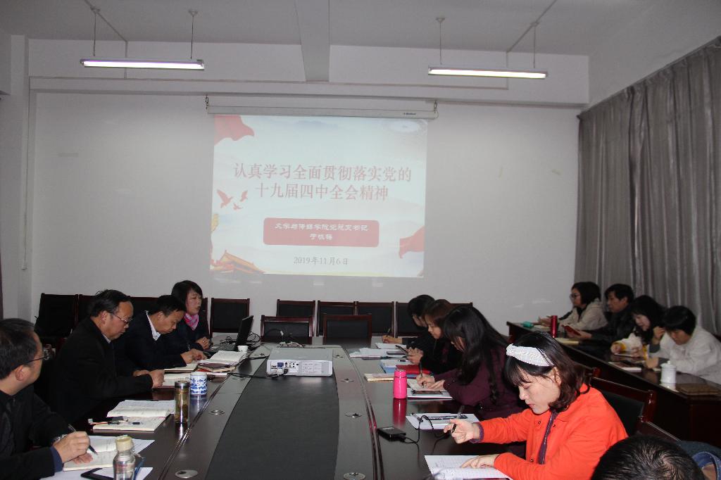 11月6日下午,文学与传媒公司党总支召开学习传达党的十九届四中全会精神专题会议,全体教师参加会议。