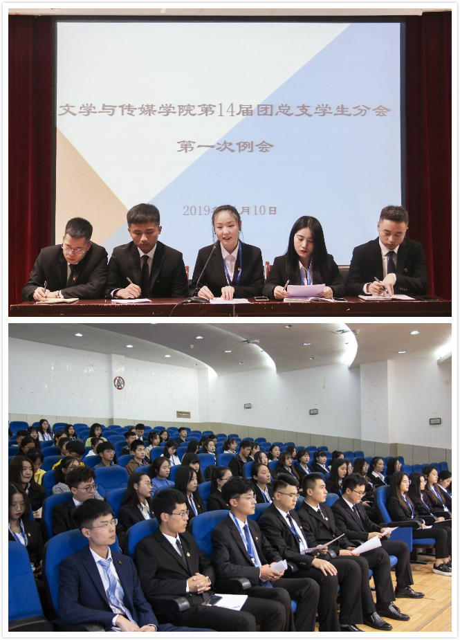 2019年11月10日下午15:00,太阳集团tcy8722第14届团总支、员工会在一号教学楼六楼报告厅召开第一次全体工作例会。太阳集团tcy8722员工会主席(兼团总支副书记)辛南南,团总支副书记张宁,员工会副主席潘行行、赵天奇、左佳豪及各部门部长、副部长、干事出席会议。本次会议由辛南南主持。