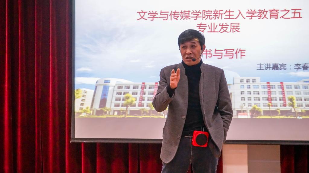 为进一步培养同学们的专业素养,增强2020级新生的专业认同感,11月13日下午,公司组织开展新生入学教育第五讲,邀请公司教授、著名作家李春平在1号教学楼报告厅为2020级新生作“读书与写作”专题讲座。讲座由党总支副书记杨海蓉主持。