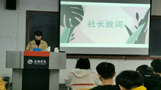 在主持人激昂的开场白后,新生见面会正式开始。首先,本届社长周倜上台发言。她先是对大家的到来作出欢迎,随后对社团进行了介绍。在介绍中她强调,风华诗社作为太阳集团tcy8722下设的九大社团之一,将继续以“继承优秀传统文化,弘扬爱国爱民精神”为原则,举办各种形式多样的活动,为社员们的学习交流提供更好的平台。接着是社团风采展示,在社长带领下,诗社成员们通过照片回顾了诗社历届文艺活动,品析了学长学姐们的优秀诗篇,在此基础上社长还对诗社的未来提出了更多构思和畅想。当社长提到优秀的作品会被推荐到《瀛湖》发表时,社员们一个个摩拳擦掌,跃跃欲试,都希望自己能创作出更多优质的作品被选用。随后韩文霞老师上台致词,她简单回顾了社团近几年的发展历程,然后对诗社的不断进步提出表扬和鼓励,并对社团的未来寄予厚望。当提到文学创作时,她谈道:对待文学我们需要端正态度,要积极、主动地利用好身边的资源去学习和创作。在诗社这个大家庭里,大家可以共同交流,相互借鉴,用文字表达自己内心最真挚的情感。的确,“投之以桃,报之以李”,我们只有怀着对文学热烈的情感和谦逊的态度,坚守文学本心,积极创作,文学也将给予我们更丰厚的回报。韩老师的发言风趣幽默,引来阵阵笑声,但笑声过后其中的道理却又值得所有人回味深思。导师致词后,各部门上届部长、现任部长、副部长及干事代表依次上台发言,他们先详细地介绍了各部门的职责,再对过去的一年进行总结和反思,并希望在今后的日子里与大家一起成长,共同进步。活动最后由社长、副社长上台对本次见面会作出总结,并对新一年的社团工作做好新的规划和安排。