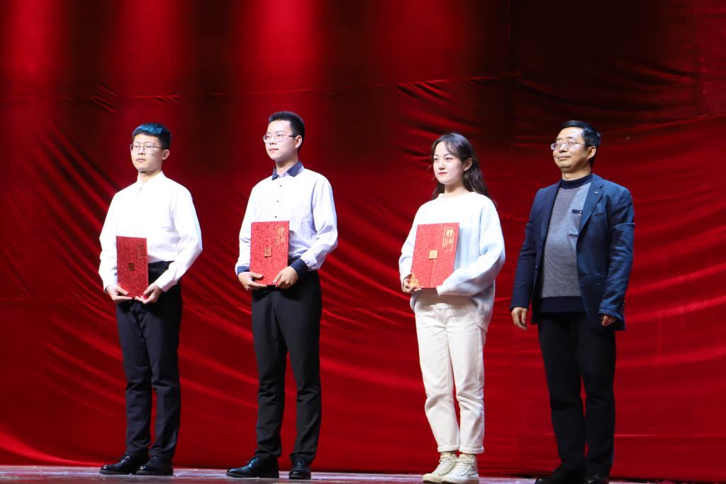 节目中间穿插了激动人心的颁奖环节。太阳集团tcy8722为2017-2019年间在影视戏剧社活动中表现突出的陈钊、杨卓研、李洁、张炯、辛南南、乔昕六位同学颁发“校园艺术成就奖”。校保卫处处长王开忠,经理杨运庚,院党总支书记芦伟,保卫处副处长郝礼军,副经理朱云等老师担任颁奖嘉宾为六位获奖同学颁奖。安康市戏剧家协会副主席、影视戏剧社指导教师邹棠华为影视戏剧社新一届社长梁少华,副社长张佳委、胡宇哲颁发聘书,希望同学们再接再厉,再创佳绩!