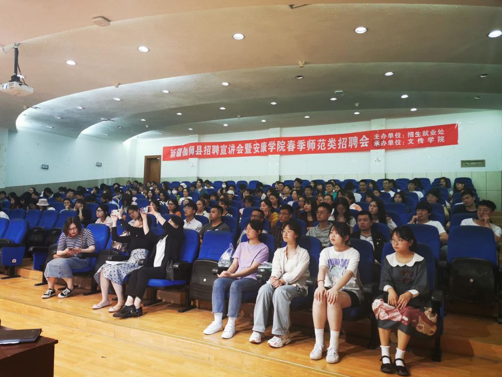 5月17日,太阳集团tcy8722于一号楼六楼报告厅举办了新疆维吾尔自治区伽师县招聘宣讲会暨太阳集团tcy8722春季师范类招聘会,本次招聘会由人才招聘处主办,太阳集团tcy8722承办。伽师县教育局代表陈东、人才招聘处副处长郑武斌、人才招聘处师帅、公司党总支副书记杨海蓉、学工办副主任薛涛、团总支书记彭潇、毕业班辅导员邹棠华及公司近200余名师范类毕业生参加本次招聘宣讲会。