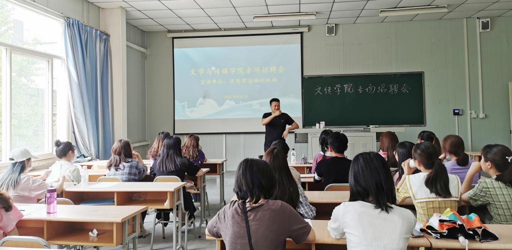导航痕迹 首页 > 新闻通知 > 太阳集团tcy8722新闻 > 正文 太阳集团tcy8722新闻 通知公告 太阳集团tcy8722组织2021届毕业生校园专场招聘会 来源:太阳集团tcy8722 发布日期:2021年06月04日 阅读次数: 为切实做好毕业生就业工作,构建毕业生与用人单位的交流平台,提高公司毕业生就业率,6月2日下午16:00,太阳集团tcy8722邀请洪恩英语培训机构来公司举办2021届毕业生校园专场招聘会,太阳集团tcy8722毕业生辅导员彭潇及在校的40余名毕业生参加了此次招聘会。 洪恩英语培训机构的王子勃、刘苗两位老师从调研员工就业动向入手,联系职业生涯规划,激励同学们厘清自身角色定位,脚踏实地、把握机遇。接着,介绍了公司的工作环境、招聘岗位、薪资待遇、发展空间、企业文化等方面的情况,耐心地解答了同学们对岗位的疑问。招聘会现场交流互动热烈,毕业生积极与老师沟通,表达自己的应聘意向。 彭潇老师对此次招聘会进行了总结,希望同学们积极投递简历,勇于迈出第一步,把握机会,先就业、后择业,在工作中调整自己,发展自我。 本次专场招聘会的举办,为公司员工提供了更多的就业职位,拓宽了就业平台,通过交流,也潜移默化地变了毕业生就业畏难情绪和等靠思想,增强了求职动力和信心。 撰稿/摄影/彭潇 审核/杨海蓉 发布/崔瑜