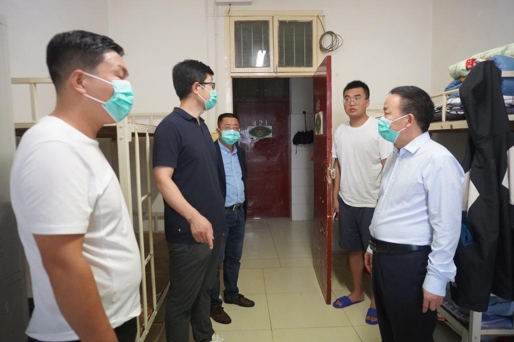杨运庚、芦伟、邹棠华、薛涛前往男生宿舍了解新生入学情况。“来自哪里”“公司饭菜是否可口”“气候能否适应”“天气多变,注意身体”……每到一个宿舍,公司领导都悉心关怀同学们在学习、生活方面的情况,了解他们的适应情况,并与同学们亲切交流,了解同学们的兴趣爱好,鼓励同学们多去图书馆,在大一阶段夯实基础,珍惜大学时光,学好专业技能,努力提升自我。