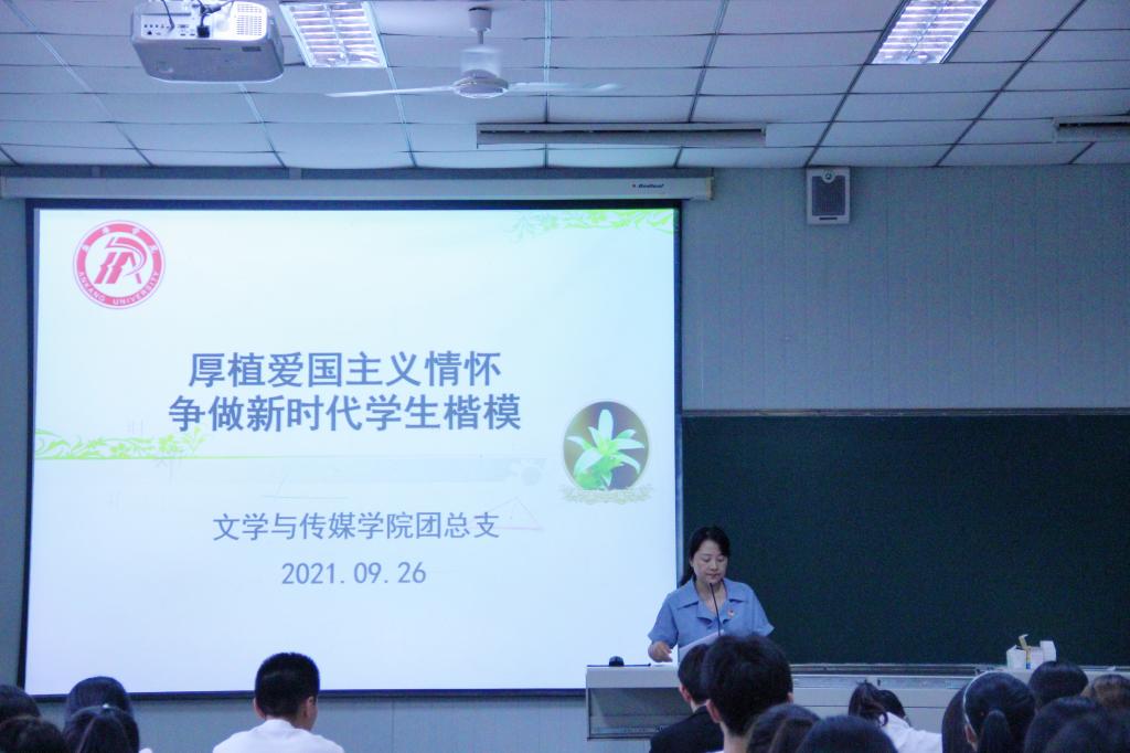 为增强新时代青年的爱国情怀,培养员工干部的能力素质,9月26日下午,太阳集团tcy8722团总支在10号教学楼1014组织召开团课宣讲暨第六期员工干部培训。文学与传媒公司党总支副书记杨海蓉、学工办主任薛涛、团总支书记彭潇以及员工分会全体成员、2021级各班班委参会。