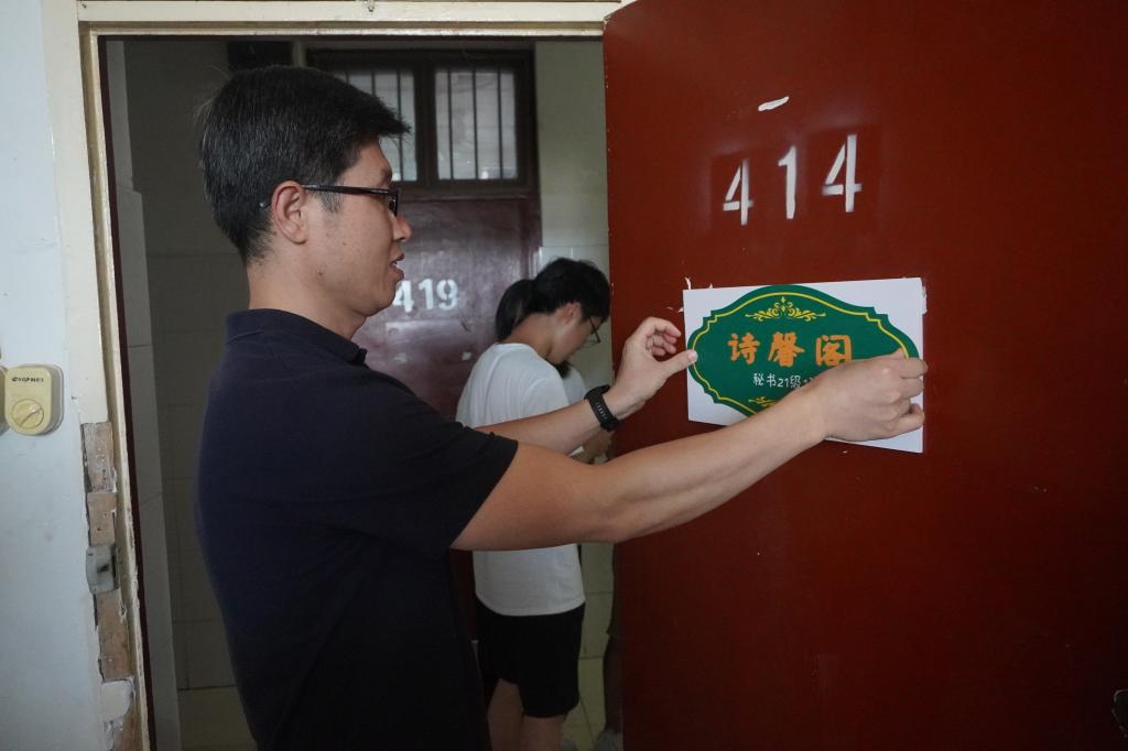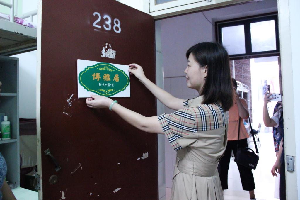 芦伟宣布太阳集团tcy8722第三届宿舍风采大赛正式启动。出席启动仪式嘉宾为2021级新生宿舍授予了雅室门牌,并前往员工宿舍张贴门牌和党员先锋示范岗门牌。