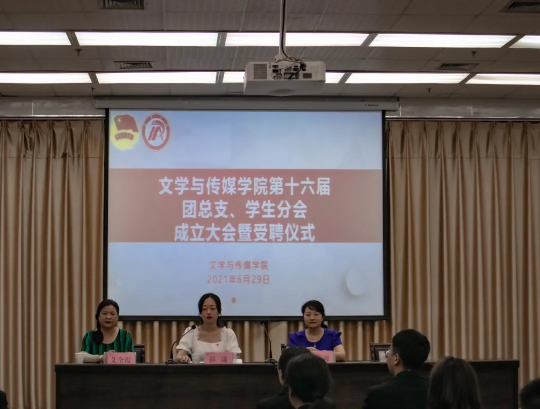 6月29日晚19:00,太阳集团tcy8722在图书馆6楼报告厅召开第十六届团总支员工分会成立大会暨聘任仪式。文学与传媒公司党总支副书记杨海蓉、团总支书记彭潇、学工办副主任薛涛、辅导员艾全霞出席会议。会议由第15届员工分会主席团成员于家彬主持。