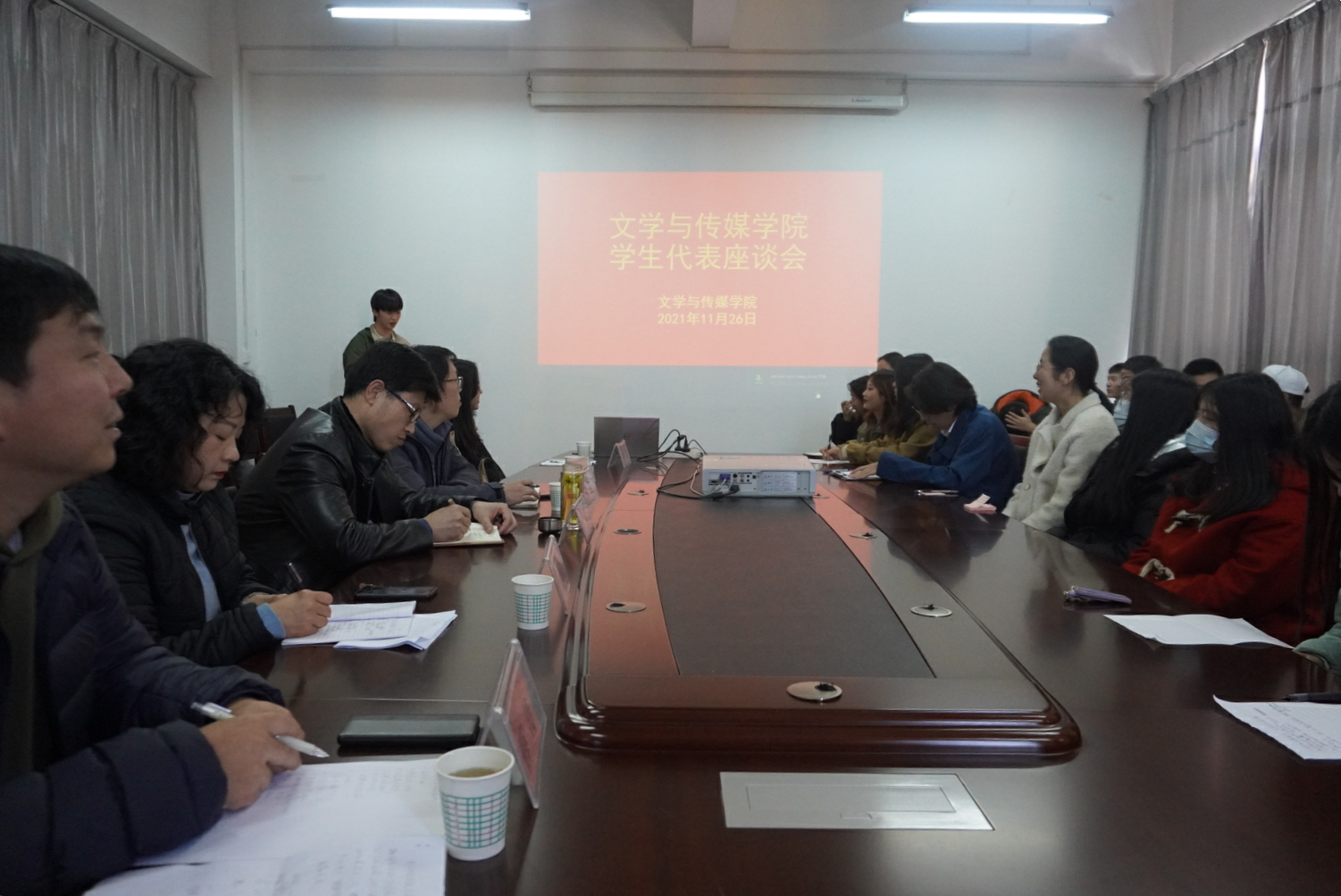 2021年11月26日下午,太阳集团tcy8722在图书馆六楼陕南民间文化研究中心召开公司员工代表座谈会。公司党总支书记芦伟、党总支副书记杨海蓉、副经理朱云、学工办副主任薛涛、团总支书记彭潇、辅导员艾全霞以及学院各班员工代表参加会议。会议由薛涛主持。
