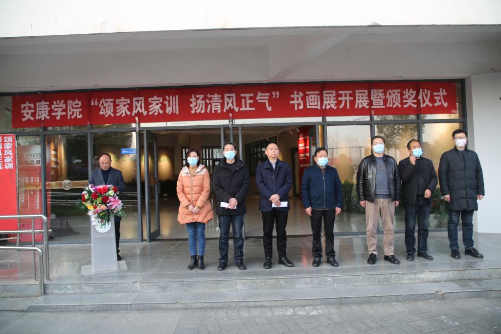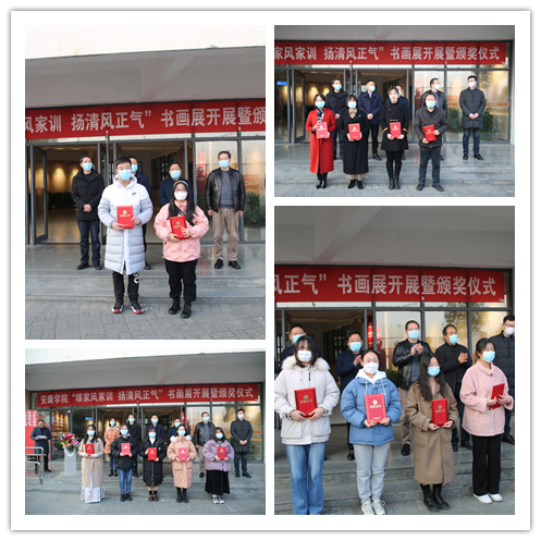 12月22日下午,太阳集团tcy8722“颂家风家训 扬清风正气”书画展开展暨书画展、征文活动颁奖仪式在江北校区艺术楼一楼正式举行。董事长钟生海,党委副书记杨行玉,党委副书记、纪委书记、监察专员安永强,纪委副书记谢玉玺,有关部门及二级公司负责人,安康市群艺馆、汉滨区文化馆相关人员和获奖师生代表。