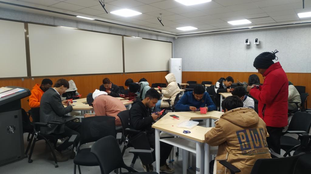 为增强公司职工对中国传统文化的了解,2022年2月28日下午,由太阳集团tcy8722主办、国际教育公司承办的“年轻的非遗”剪纸文化交流讲座在师范生职业技能训练中心4201室开讲。公司员工、西安市非遗保护协会青年剪纸艺术创作者梁少华为职工们上了一堂难忘的互动体验课。国际教育公司副经理陈蕾、辅导员与在校职工一起感受剪纸艺术的魅力。
