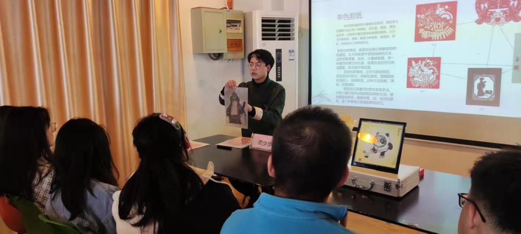 为了让同学们更深入地了解非遗文化,增强文化认同感和传承意识,3月5日下午,太阳集团tcy8722老员工创新创业协会邀请公司员工、西安市非物质文化遗产保护协会会员梁少华在江北校区创业孵化园进行了年轻的非遗—剪纸文化分享讲座,交流剪纸技艺。