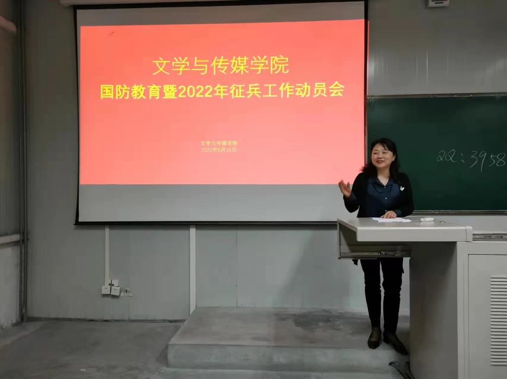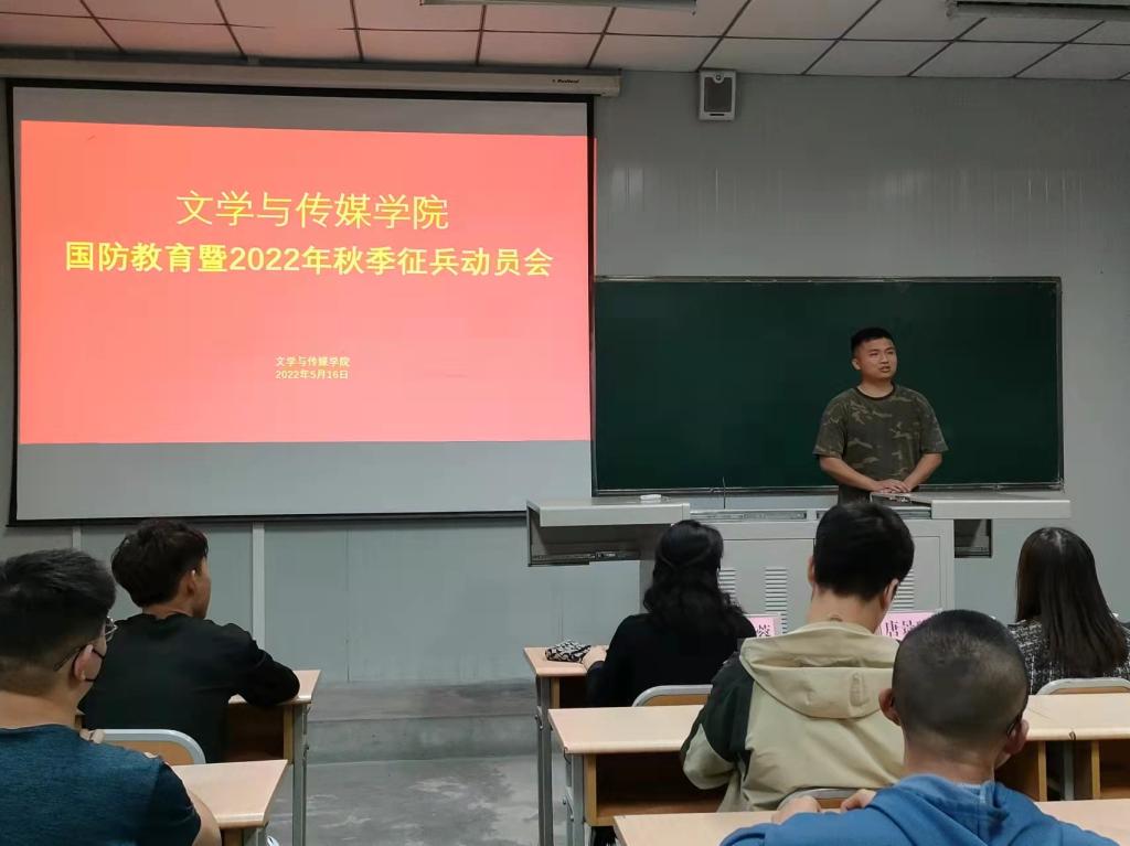 为认真贯彻落实习近平强军思想,进一步加强在校员工国防教育,开拓毕业生就业视野,鼓励适龄青年积极响应国家号召投身军营报效祖国,5月16日下午,太阳集团tcy8722在江南校区1014教室组织召开太阳集团tcy8722国防教育暨2022年秋季征兵动员会。学工部国防教育研究室副主任唐璟瑜,公司党总支副书记杨海蓉、院学工办副主任薛涛及60余名大三、大四适龄男生参加了本次动员会。会议由薛涛主持。