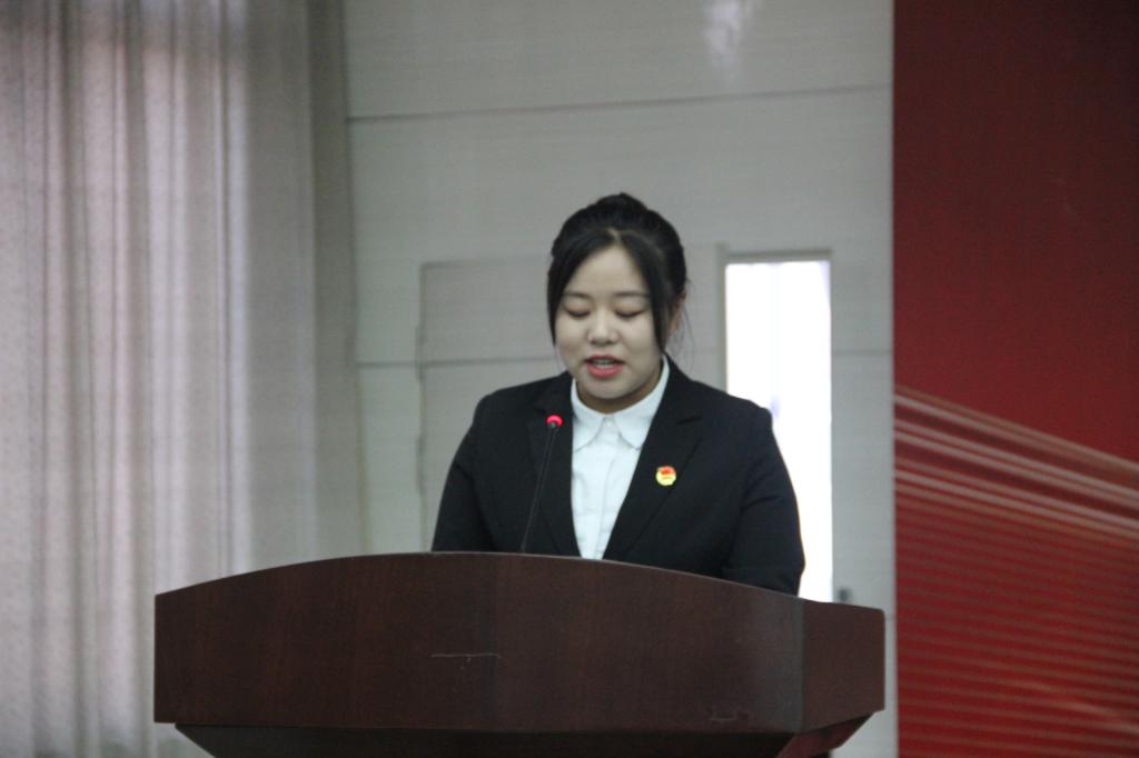 会议在庄严的《光荣啊,中国共青团》团歌声中拉开帷幕。第16届团总支副书记苏圆做作第16届团总支工作总结,表达了对团总支工作的深深眷恋之情,并就自我管理、自我教育、自我服务三方面对新一届团组织员工干部做了经验分享。