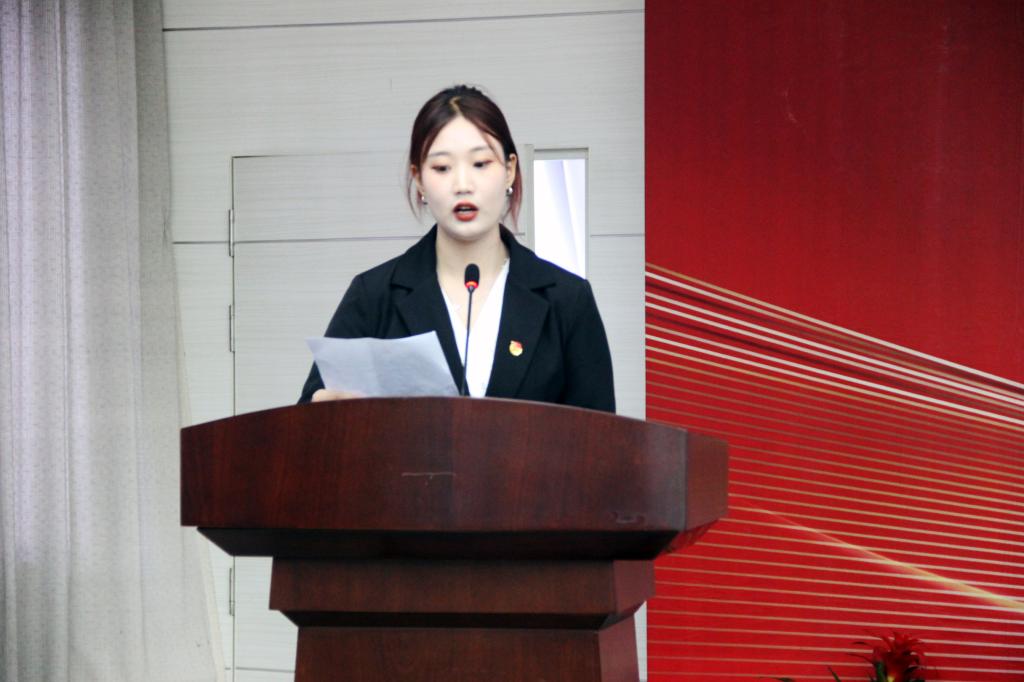 新一届团总支副书记胡钰梽、员工分会主席团成员唐磊发表就职演讲,他们陈述了新一届团总支、员工分会的工作思路,对未来工作作出展望,希望能在团总支、员工分会这片壮阔舞台上谱写更壮丽的篇章。