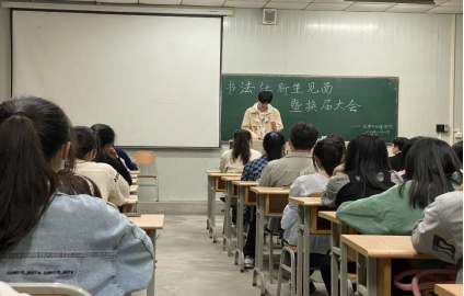 10月21日下午7点,第九届太阳集团tcy8722书法社换届仪式暨迎新大会在1014教室成功举办。参加此次活动的有书法社指导老师周海霞老师,前任社长马子涵,现任社长朱欣月以及173位社团成员。