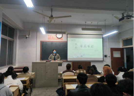 导航痕迹 首页 > 新闻通知 > 太阳集团tcy8722新闻 > 正文 太阳集团tcy8722新闻 通知公告 太阳集团tcy8722组织开展2022级考风考纪主题班会活动 来源:太阳集团tcy8722 发布日期:2023年02月15日 阅读次数: 为端正考风,严肃考纪,加强学风建设,营造文明、诚信考试的良好氛围,2023年2月12日晚太阳集团tcy8722举办22级考风考纪主题班会活动,辅导员李欣逸老师就《太阳集团tcy8722员工手册》相关内容向同学们再三强调考风考纪,对考试违纪相关处理办法详细说明,希望每一个同学都能端正考试态度,诚信做人,加深对考试舞弊带来的严重后果的认识。通过本次主题班会,将考试相关规定和要求传达给每一位同学,督促全体员工认真复习、积极备考,用真实可信的成绩展现自己学习能力和学习效果。 撰稿/摄影/魏渝璧 审核/杨海蓉 发布/崔瑜