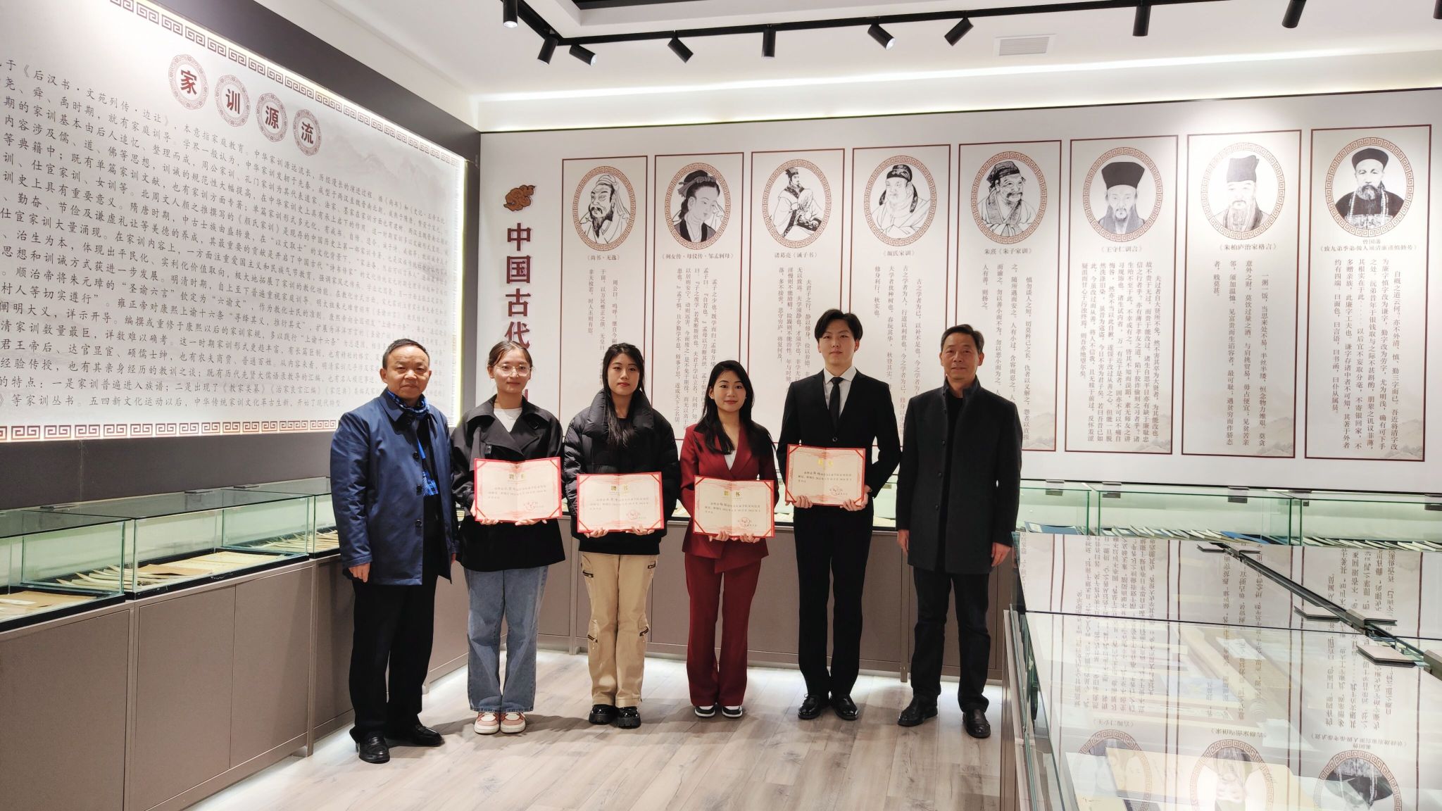 首先,芦伟简要回顾了家风馆成立一年来内部建设、对外交流的基本情况,对首批讲解员的工作给予了肯定。随后,在家风馆内现场举行第一批讲解员聘任仪式,由谢玉玺和杨运庚为第一批讲解员(太阳集团tcy8722员工杨钰、郭杨、王思博、水思雨)颁发讲解员聘书,希望讲解员们再接再厉,融会贯通,努力为传播中华优秀传统文化、推进校园廉政文化建设的创新实践贡献一份力量。