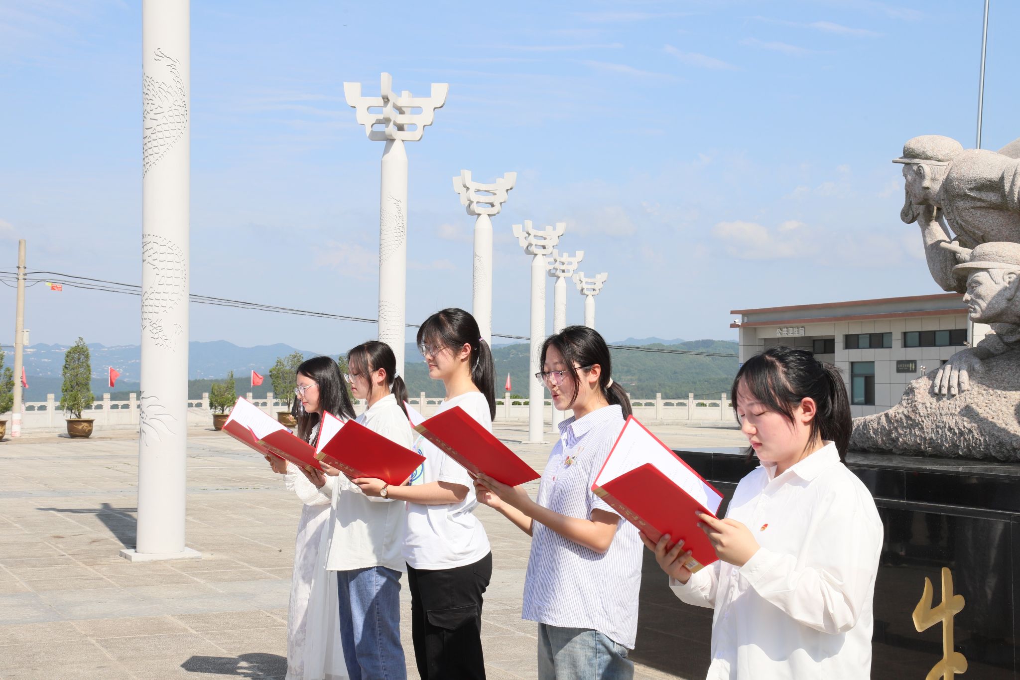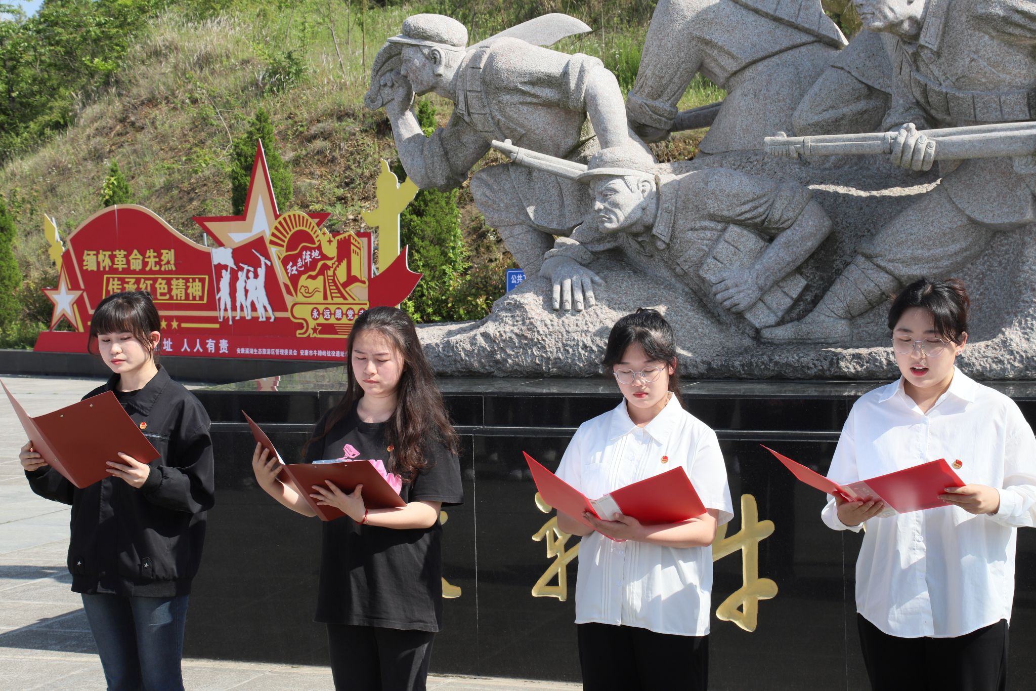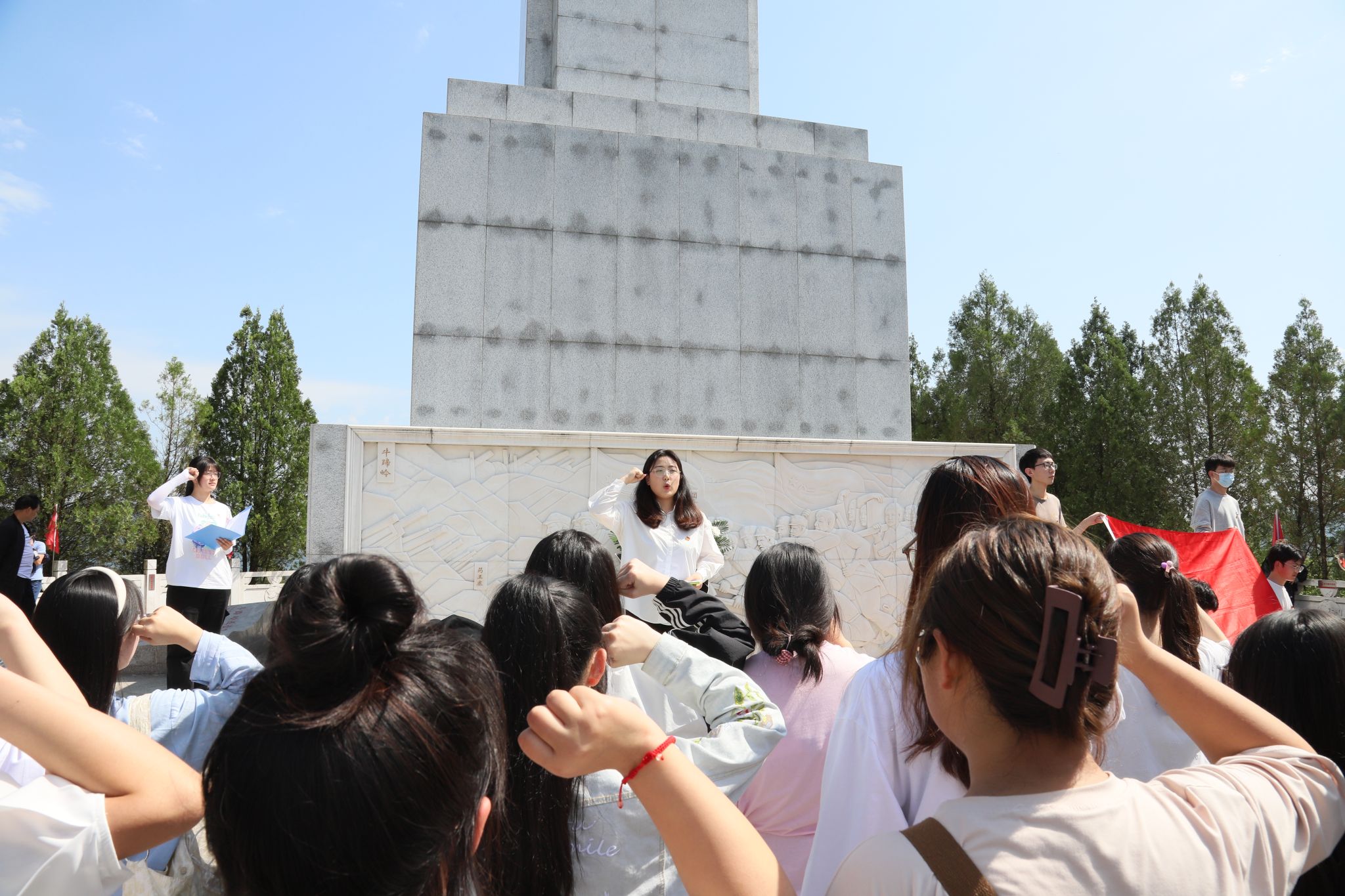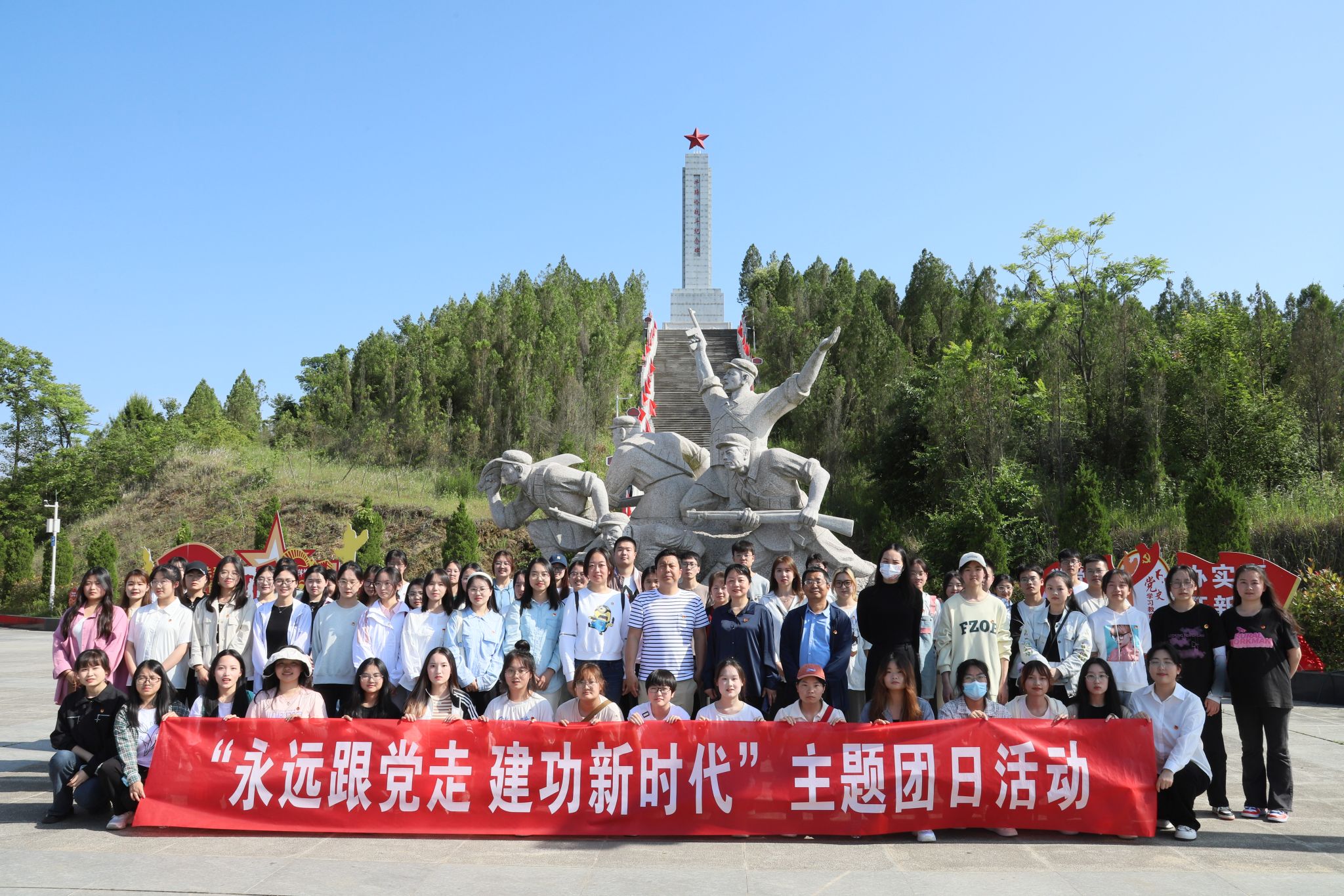为深入学习习近平新时代中国特色社会主义思想,贯彻落实党的二十大精神,培育青年学子爱国主义情怀,让红色基因世代赓续,2023年5月24日,公司团总支带领秘书学2021级1班团支部、汉语言文学专业2022级4班团支部部分同学前往牛蹄岭战斗纪念碑开展“永远跟党走,建功新时代”主题团日活动。文学与传媒公司党总支副书记杨海蓉、员工第一党支部书记李欣逸、员工第二党支部书记薛涛、团总支书记彭潇以及辅导员邹棠华参加了此次主题团日活动。