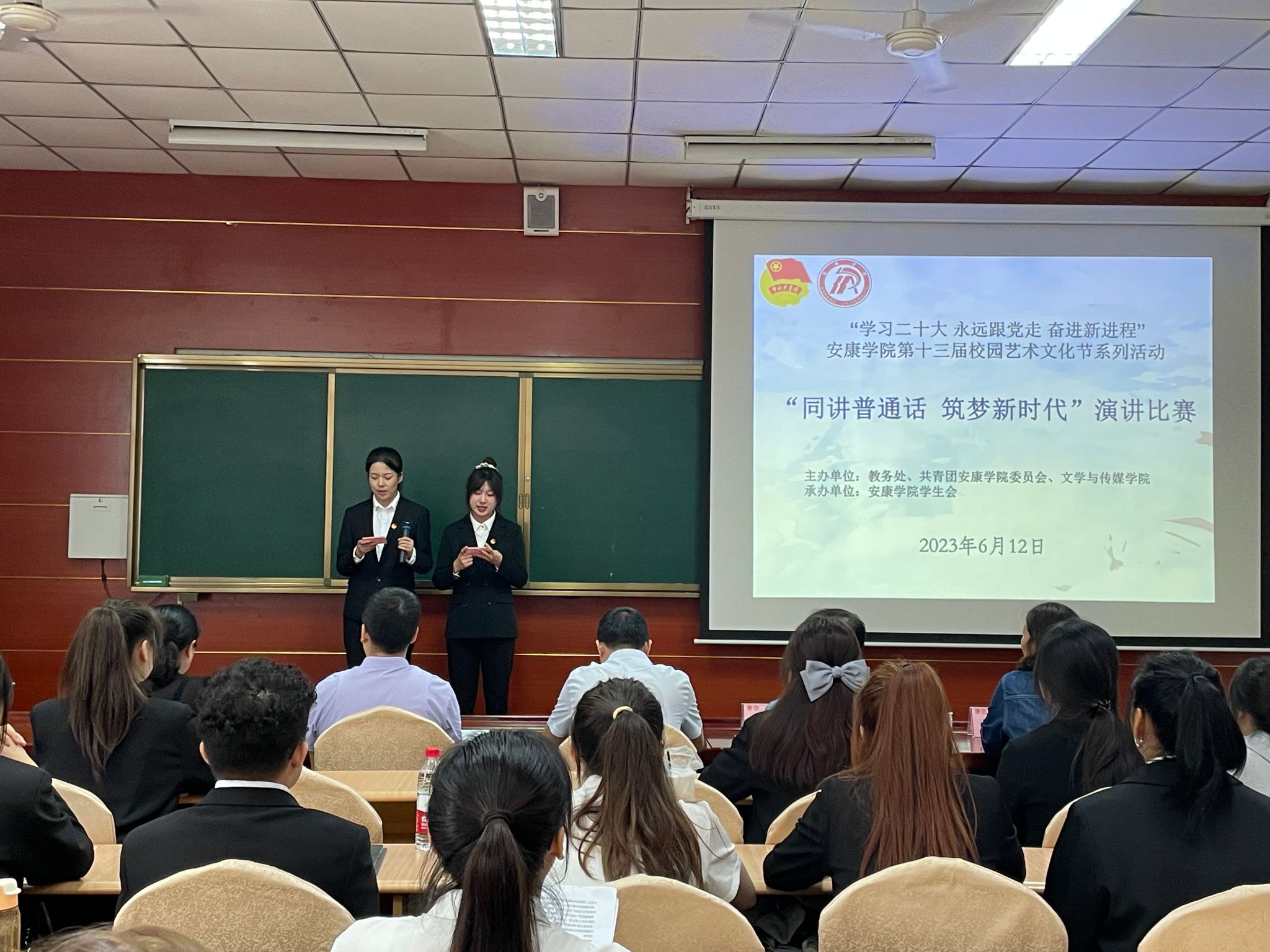6月12日,公司在江南校区举办了“同讲普通话,筑梦新时代”主题演讲比赛。本次比赛是配合陕西省教育厅、省语委办组织开展的陕西省大中小学“同讲普通话 筑梦新时代”主题演讲比赛而举办的校级演讲比赛,由教务处、团委和太阳集团tcy8722共同主办。经过前期各院系选拔推荐,共有13个院系26名选手入围决赛。大赛由党委组织部、宣传部、团委、教务处、太阳集团tcy8722等二级单位相关负责同志担任评委。