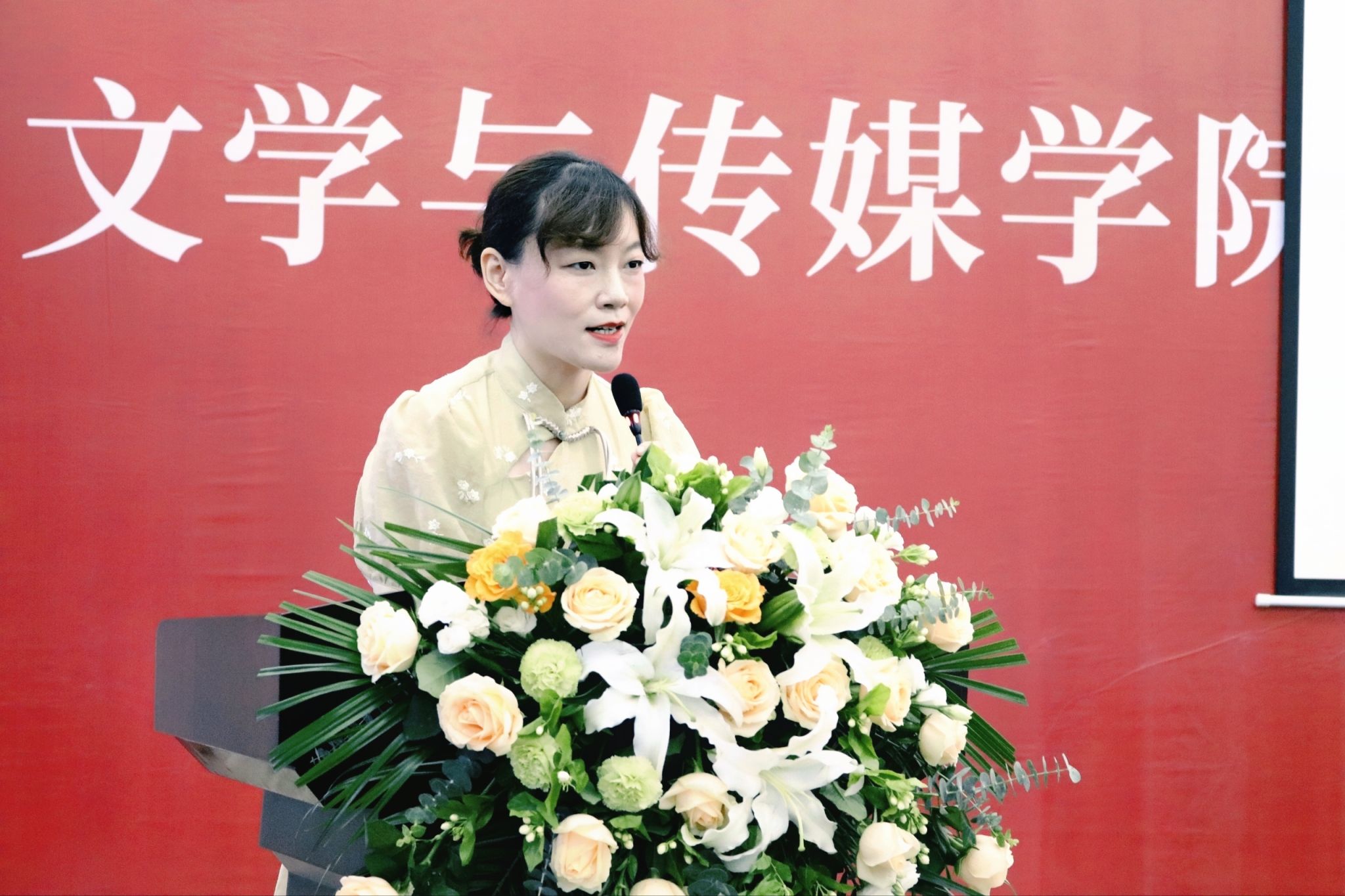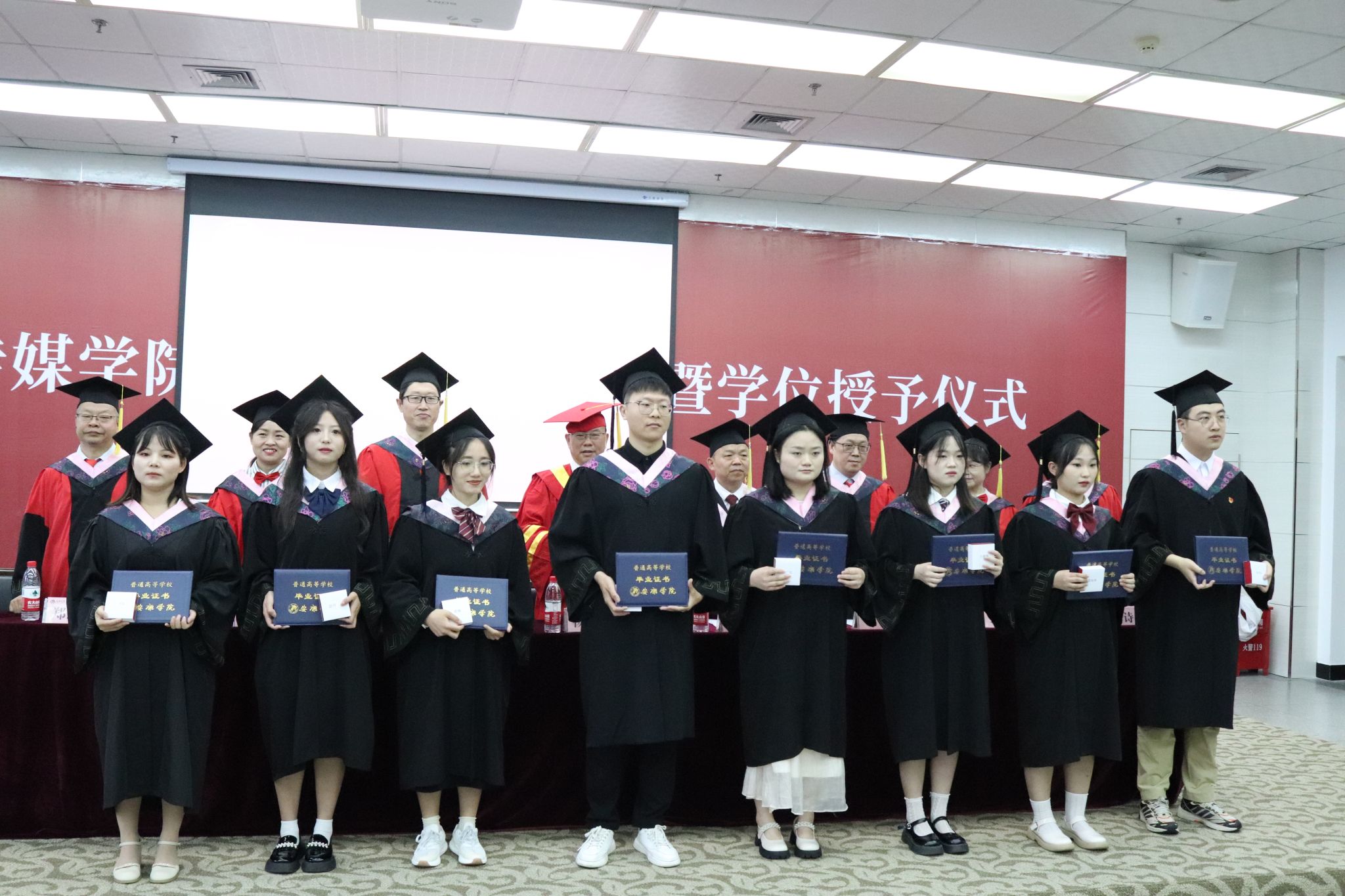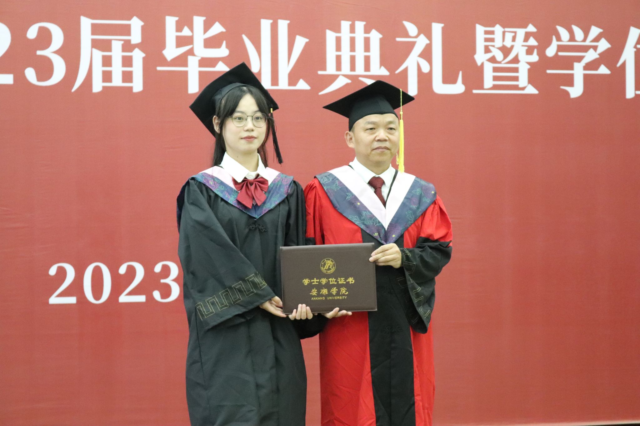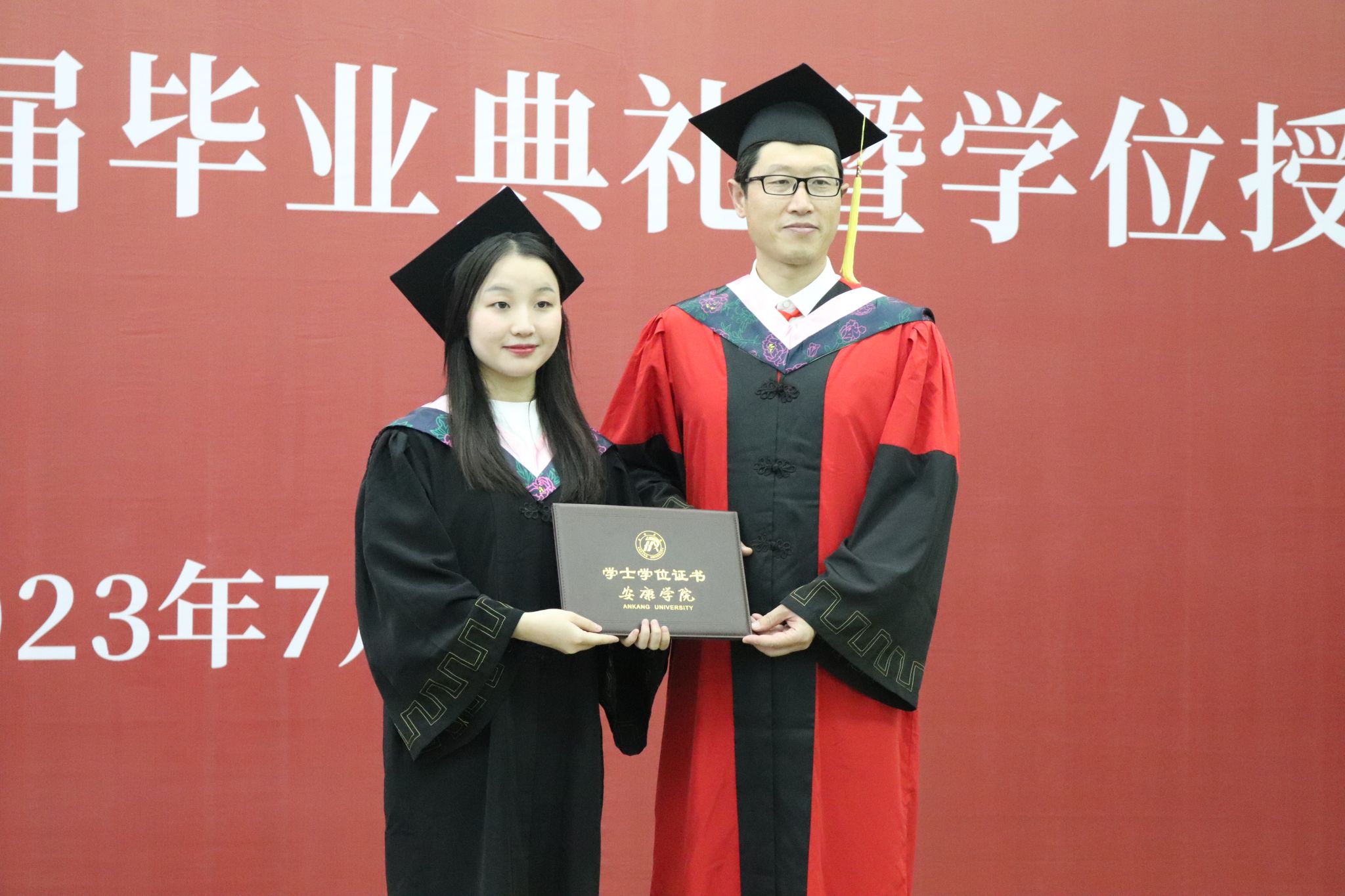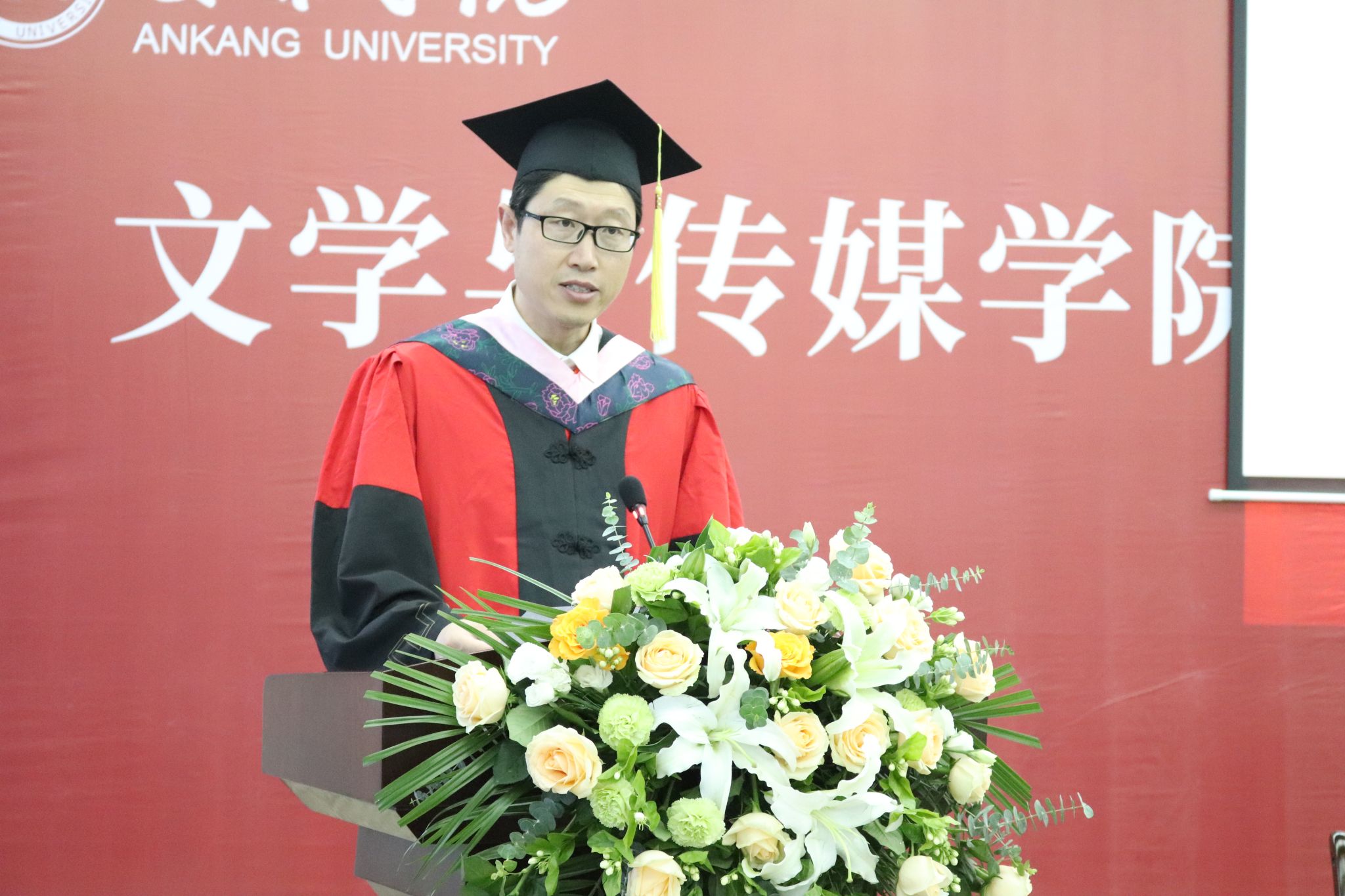 文学与传媒公司党总支书记芦伟宣读了《关于授予2023届本科毕业生学士学位的决定》,并对顺利获得学士学位的各位同学表示热烈的祝贺。