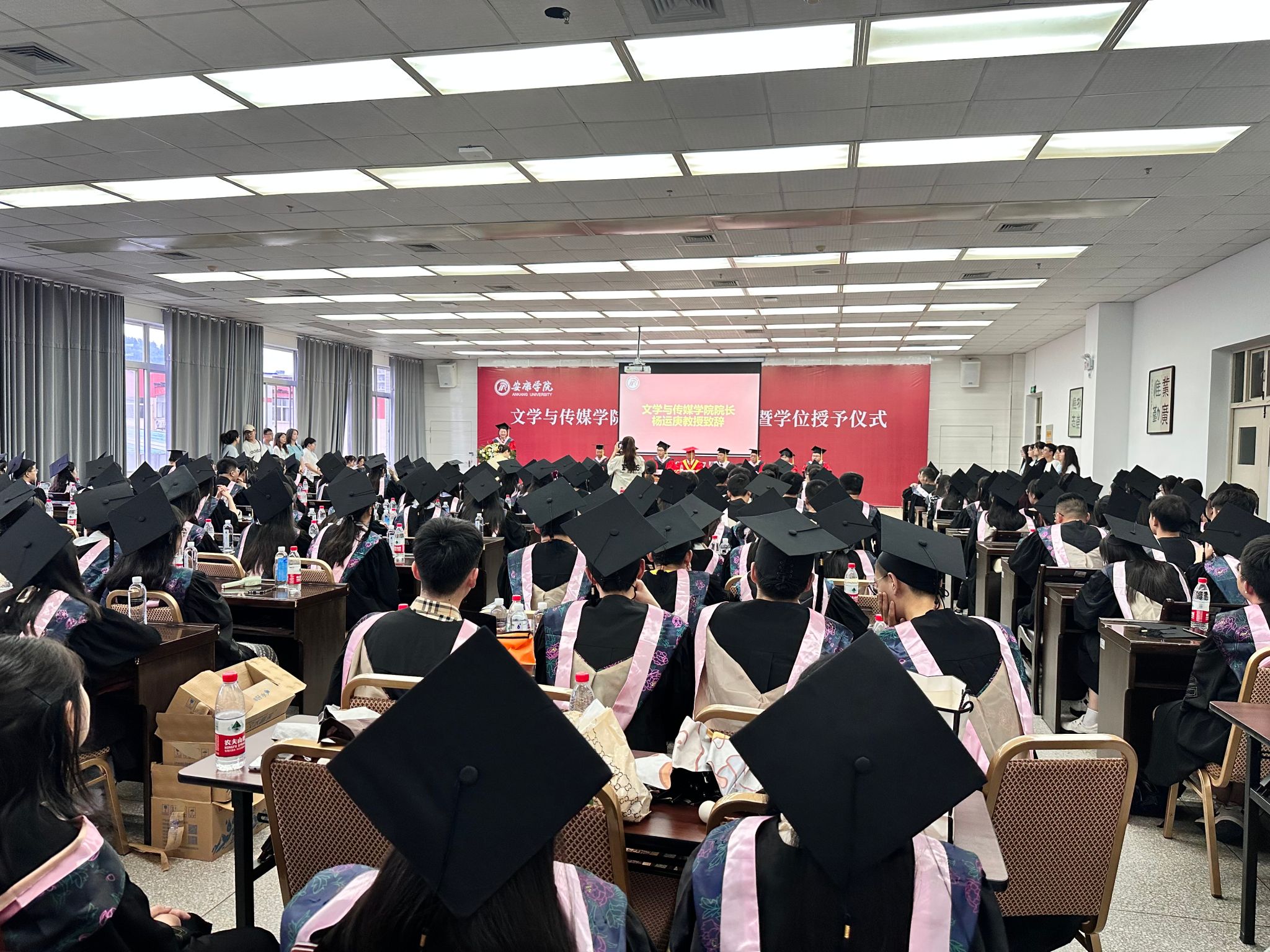 在庄严的国歌声中,毕业典礼正式拉开了帷幕。