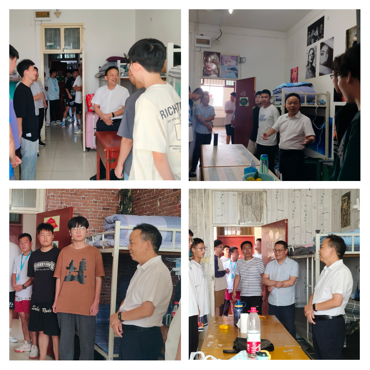 导航痕迹 首页 > 新闻通知 > 太阳集团tcy8722新闻 > 正文 太阳集团tcy8722新闻 通知公告 宿舍走访递温情,育人在心续征程 来源:太阳集团tcy8722 发布日期:2023年09月07日 阅读次数: 为促进师生交流,深入了解2023级新生在校生活,2023年9月5日下午,太阳集团tcy8722领导班子成员和学工办辅导员深入宿舍看望新生。 走进新生宿舍,院领导对新生的到来表示热烈欢迎和亲切的问候,询问了新生的假期生活和到校适应情况,与同学们畅谈对老员工活的期待。院领导叮嘱新生要对所学专业形成正确认识,尽快适应老员工活,与同学和谐相处营造积极和谐的宿舍氛围,发展兴趣爱好,提升自我能力。其次,要懂得感恩,与父母家人常交流多沟通,让家人放心。最后提醒同学们珍惜学习时光,树立远大理想,做新时代老员工。同学们也纷纷表示会尽快调整状态,融入公司大集体,迎接老员工活。 本次的走访慰问增强了老师与同学们的沟通,让新生感受到来自公司的关怀与温暖,拉近了师生距离,为新生尽快适应新环境、培养归属感奠定了基础。青春的列车已启动,新的征程已起航,师生携手,共同开启精彩的大学时光! 撰稿/肖瑶 摄影/王一纯 何昱杰 审核/杨海蓉 发布/崔瑜