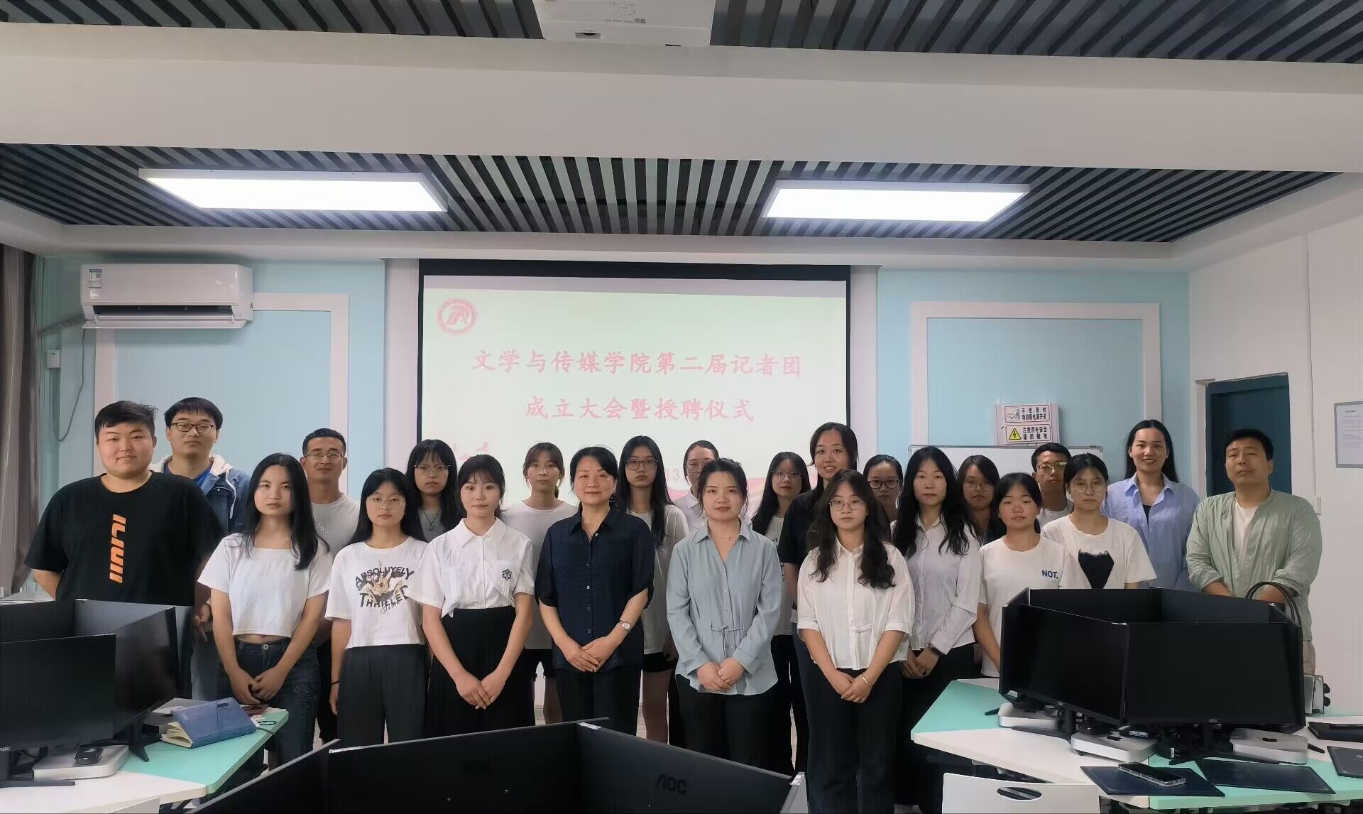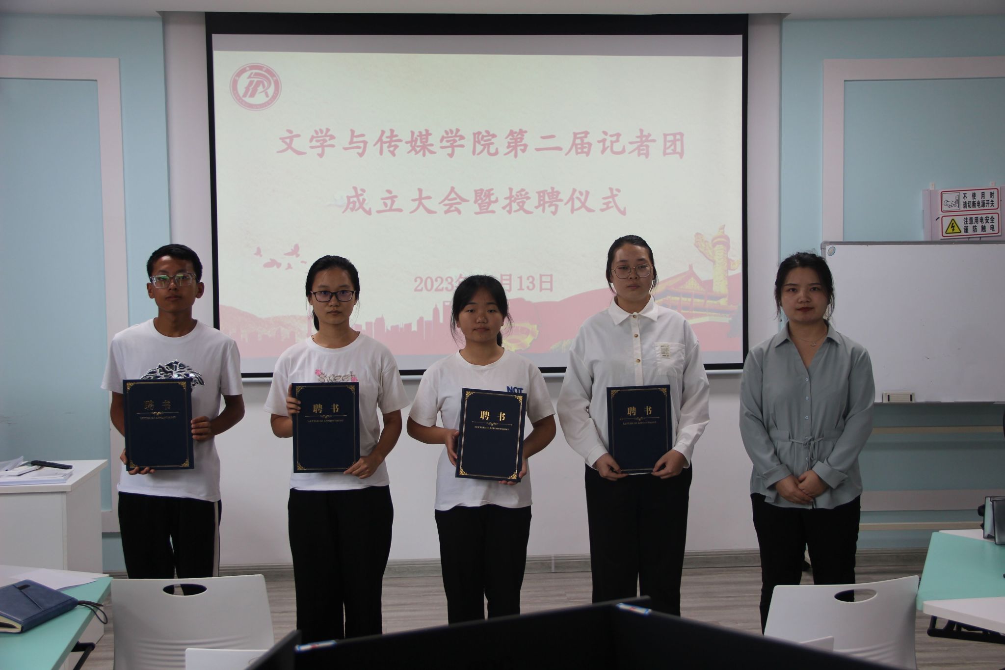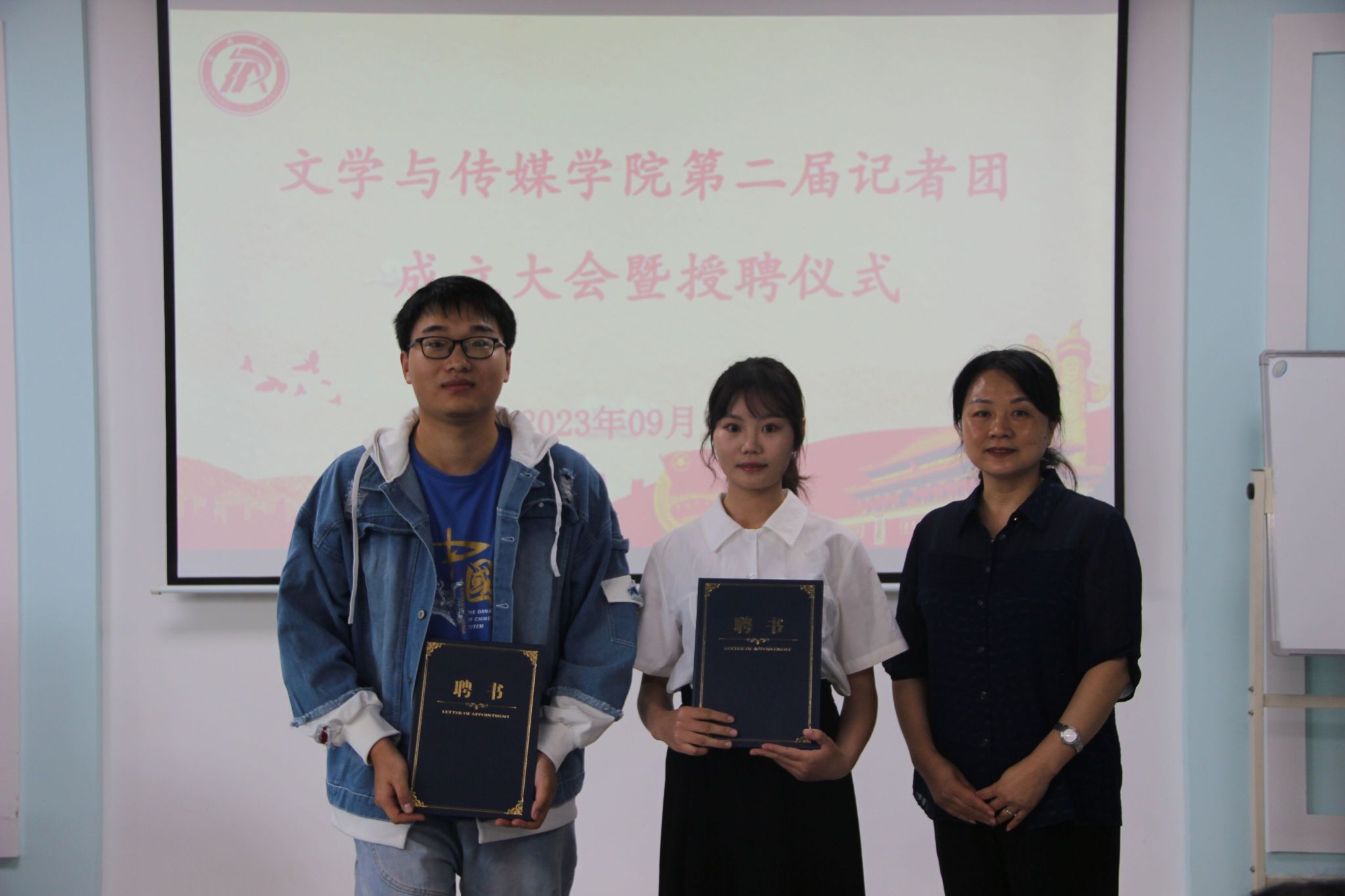 为保障太阳集团tcy8722记者团工作的连续性,培养一批高素质、高水平的新媒体人才,持续打造公司坚强有力的宣传阵地,公司于9月13日在2414教室举行太阳集团tcy8722第二届记者团换届大会暨受聘仪式。公司党总支书记杨海蓉,团总支书记彭潇,学工办副主任薛涛,专业教师彭雅伦,辅导员李欣逸、许明和社团全体人员参会,会议由艾佳新主持。