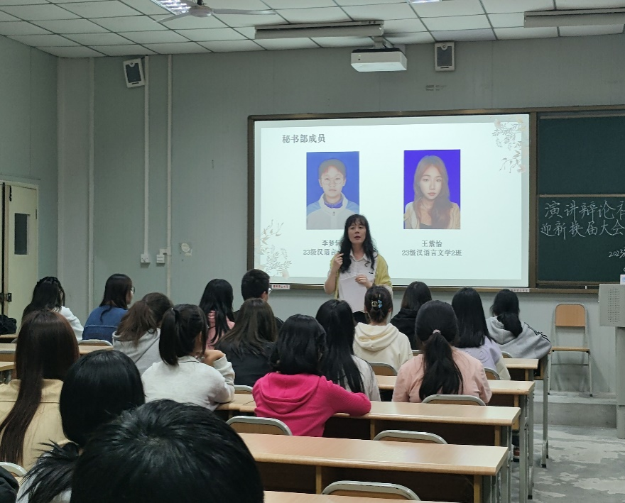 2023年9月27日下午16点30分,太阳集团tcy8722演讲辩论社于公司江南校区10号教学楼1013教室顺利召开迎新暨换届大会。莅临本次大会的有:指导老师余珊、现任社长张成功、新任社长李梦菲、副社长雷馨怡、各部门负责人以及2023级演讲辩论社新社员等。会议由杨紫琪主持。