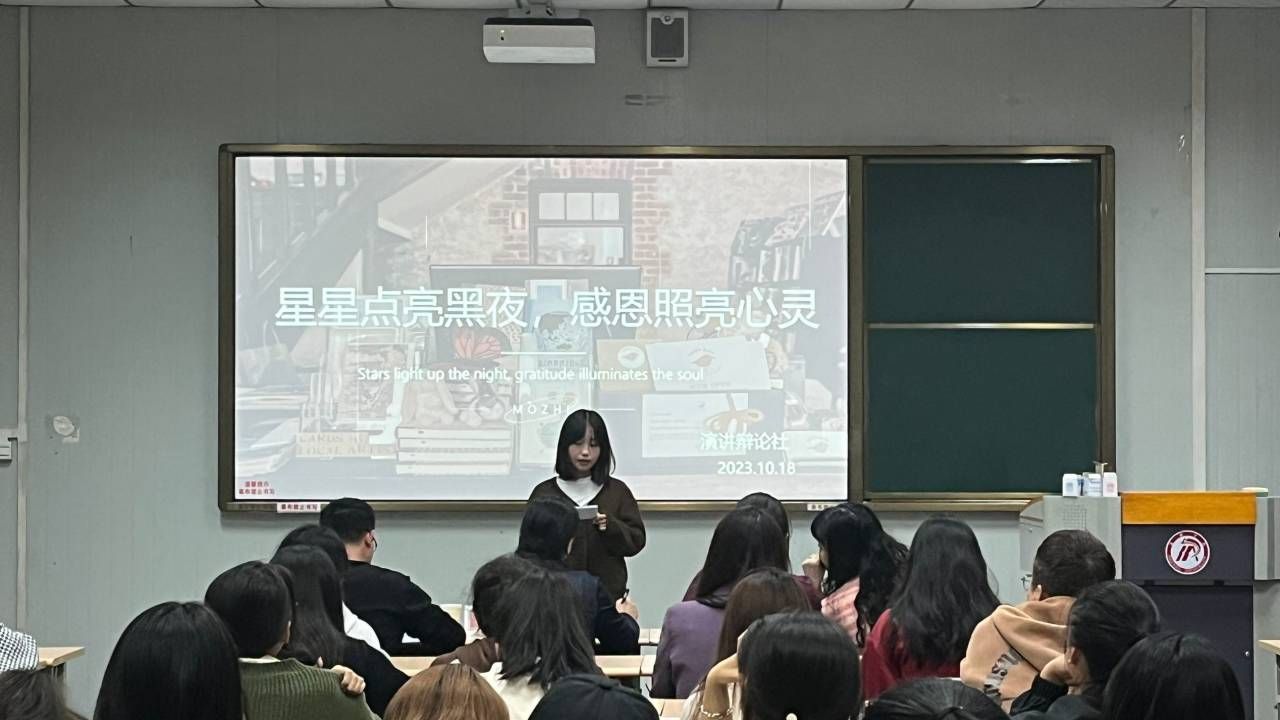 为传播正能量,传递文化价值观,让更多人通过演讲的方式展示自己的才华,教育老员工懂得感恩,学会感恩,引导老员工明确使命与责任,10月18日下午15时,太阳集团tcy8722“星星点亮黑夜,感恩照亮心灵”主题演讲比赛在太阳集团tcy8722江南校区10号楼1013教室拉开帷幕。太阳集团tcy8722党总支副书记杨海蓉,团总支书记彭潇、演讲辩论社指导老师余珊和新生辅导员许明担任评委,活动由陈思茹主持。