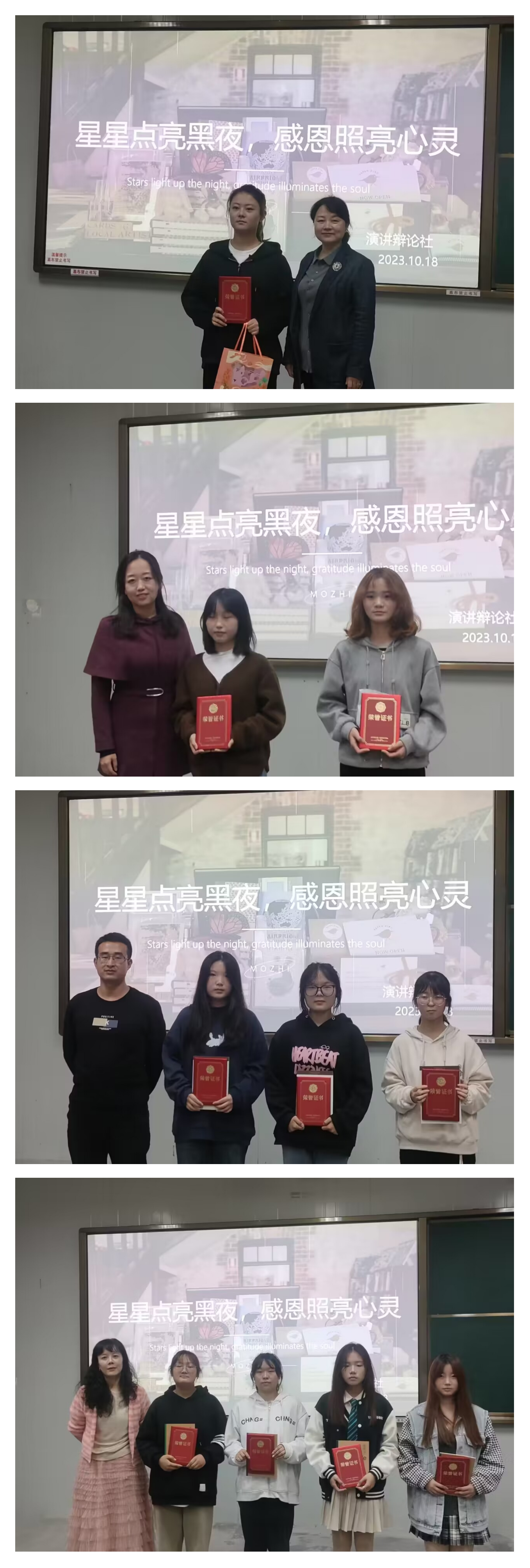 演讲比赛在师生热切的期盼中拉开了帷幕。10位选手激情澎湃、神采飞扬,饱含感情、娓娓道来,他们用一个个精彩的励志故事充分彰显了阳光学子的感恩情怀、责任意识和进取精神,声情并茂地表达出对朋友、家长、老师的感激之情,用积极行动来回馈家庭和社会。经评审组决议,李甜雨同学荣获一等奖,顾扬玉、张渝平同学荣获二等奖,唐千慧、韩金、李闯薇同学荣获三等奖,朱心彤、韩萍、谢春妙、王紫怡同学获得优秀奖。
