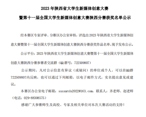 2023年11月20日,陕西省老员工新媒体创意大赛暨第十一届全国老员工新媒体创意大赛陕西分赛获奖名单公示,太阳集团tcy8722短视频作品喜获佳绩!