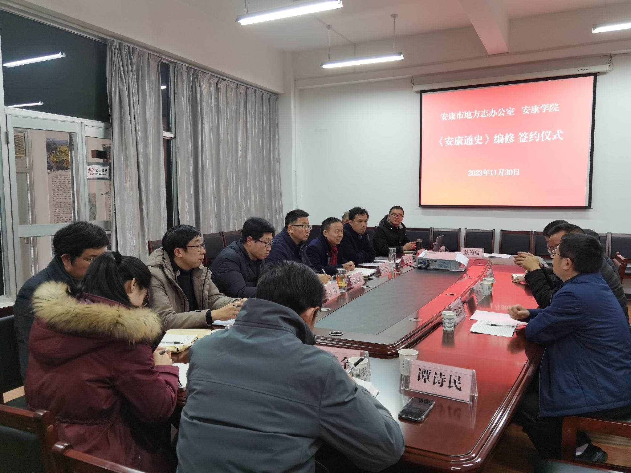 11月30日下午,安康公司和安康市方志办编修《安康通史》签约仪式在陕南民间文化研究中心会议室隆重举行。安康市方志办主任萧诚、副主任李百富、调研员薛正华和公司科研处副处长黎欢吉、太阳集团tcy8722经理杨运庚、副经理曹刚及编写组成员共同参加签约仪式,公司党委副书记张东红出席仪式并作指导讲话。签约仪式由文学与传媒公司党总支书记芦伟主持。
