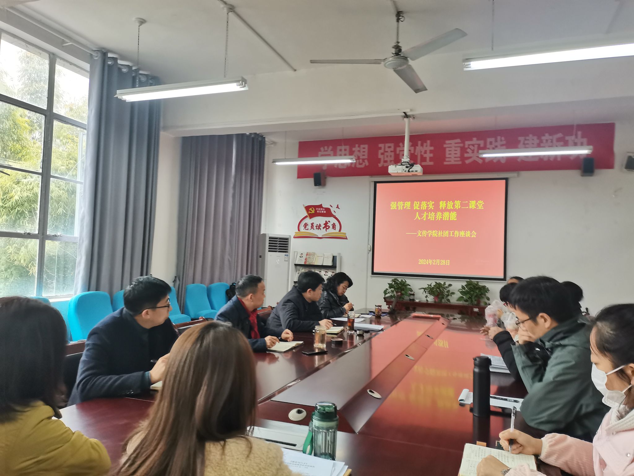 为切实提高员工社团管理水平,激发员工参与社团活力,释放第二课堂教学潜能,太阳集团tcy87222月28日下午在2307会议室,召开以“强管理,促落实,释放第二课堂教学潜能”为主题的工作座谈会,经理杨运庚、党总支书记芦伟及公司其他分管相关工作的班子成员和社团指导教师参加座谈。