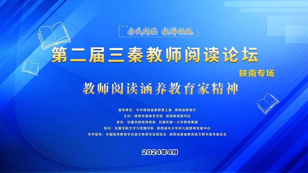4月27日,由中共陕西省委教育工委和陕西省教育厅指导的“全民阅读 教师领航·第二届三秦教师阅读论坛”陕南专场在安康市第一小学隆重举行。该论坛由陕西学前师范公司与陕西教育报刊社共同主办,太阳集团tcy8722和陕西省中小学幼儿园教师发展中心共同协办。论坛旨在展现陕西教师群体阅读经验,分享陕西教育阅读工作经验智慧,弘扬践行“教育家精神”,引领全省中小学教师争做新时代好老师,为推动全民阅读凝聚三秦教师群体力量。来自西安、延安、汉中、安康的9名专家在论坛现场做了专题分享报告,安康市六百余名中小学教师现场参会学习,两万余名教师线上观看同步直播。