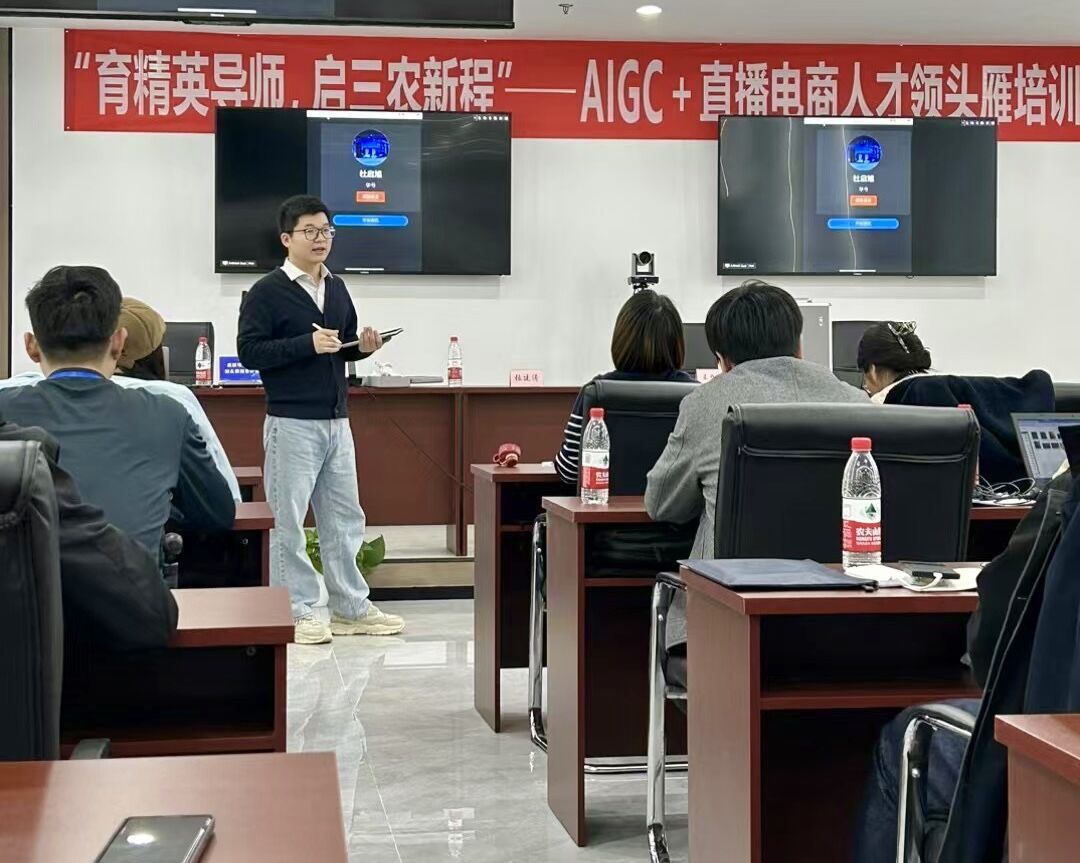近日,公司网络与新媒体专业教师张建涛博士,作为特聘专家讲师,于11月7日至11月9日,在山东AIGC产业创新中心开展了“育精英导师,启三农新程”——AIGC+直播电商人才领头雁培训班系列授课活动。
