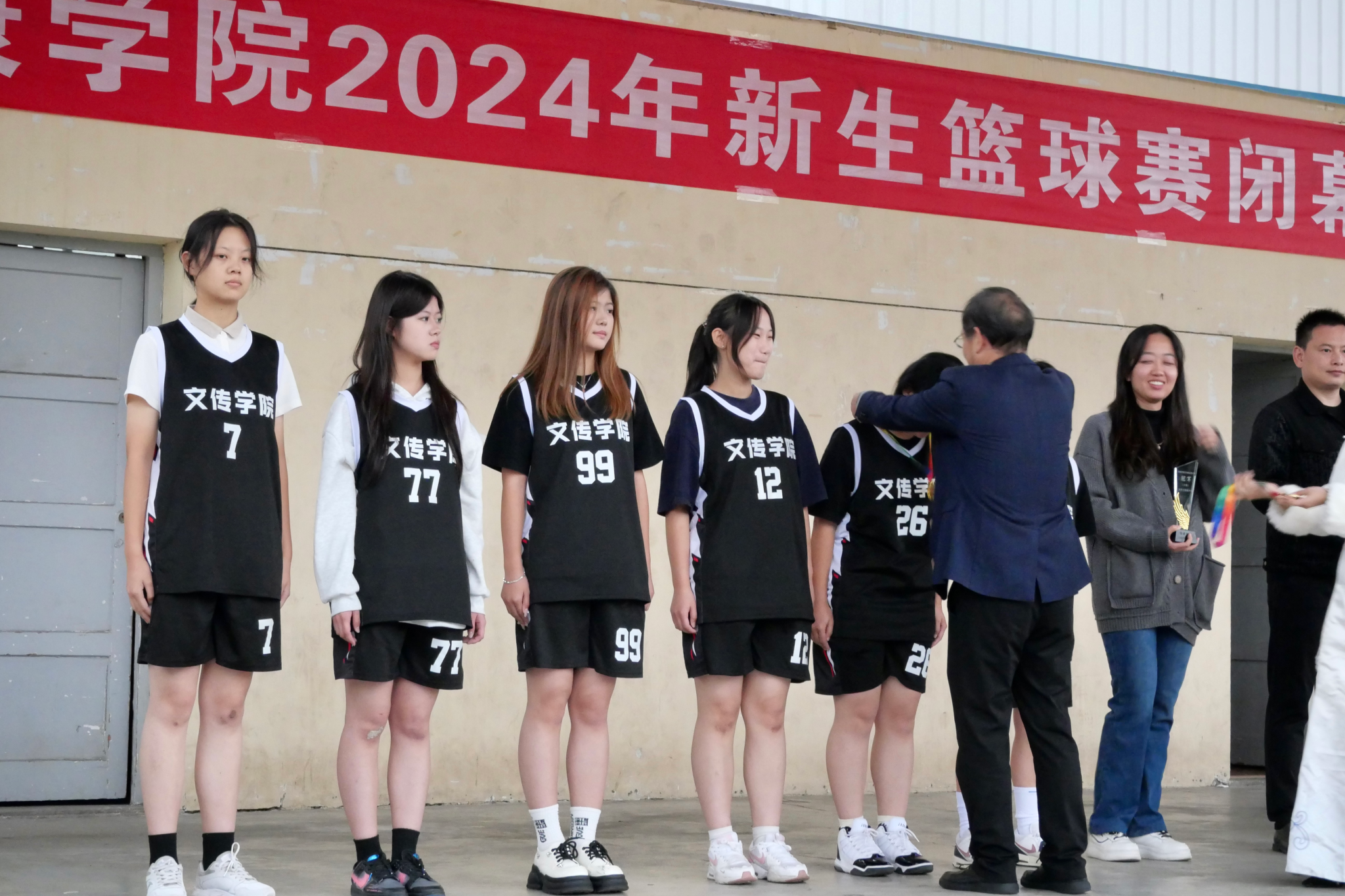 11月14日下午,太阳集团tcy87222024级新生篮球赛闭幕仪式在江南校区操场隆重举行,为这场历时十八天的充满活力和挑战的赛事画上圆满的句号。副董事长屈险峰出席,学工部、保卫部、教务处、团委、体育公司等部门领导,各公司团总支书记、裁判员代表、各院系代表队参加了闭幕式。仪式由段雪丰主持。