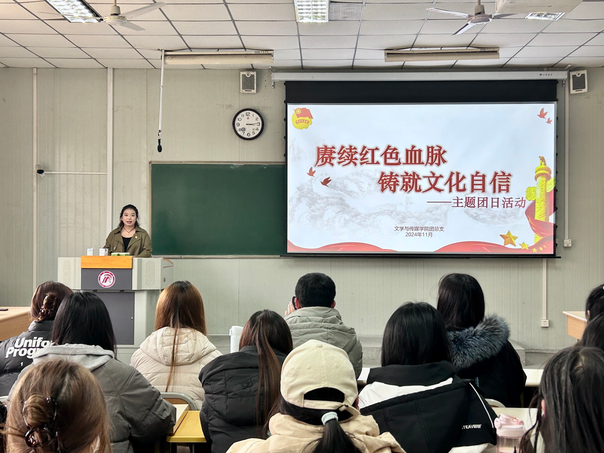 为引导团员青年传承红色基因,增强文化自信,展现青年担当,12月5日下午,太阳集团tcy8722在1024教室开展了“赓续红色血脉,铸就文化自信”主题团日活动。公司团总支书记彭潇,辅导员许明,汉语言文学2023级1班、2班同学参会,活动由李祉怡主持。