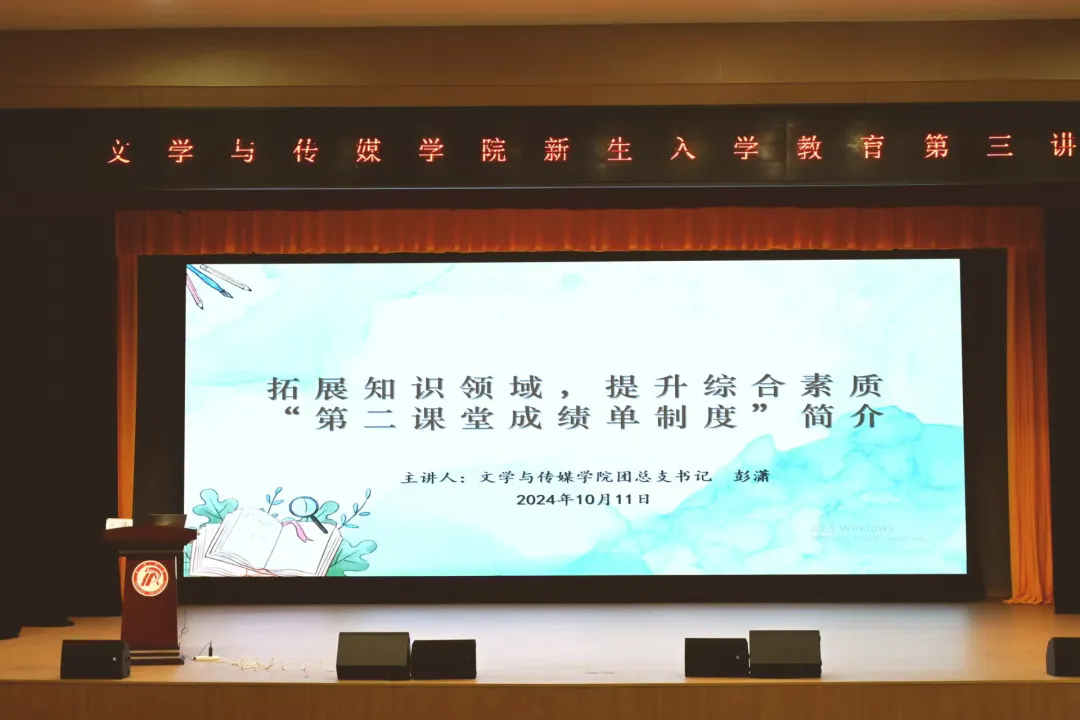为全面提高新生综合素质,以完备、科学的“第二课堂成绩单”制度体系提升第二课堂育人实效,2024年10月11日下午,太阳集团tcy8722在江南校区大礼堂开展新生入学教育第三讲:拓展知识领域,提升综合素质——“第二课堂成绩单制度”简介。公司团总支书记彭潇主讲,辅导员喻言、刘言军和2024级全体同学参加,会议由刘言军主持。