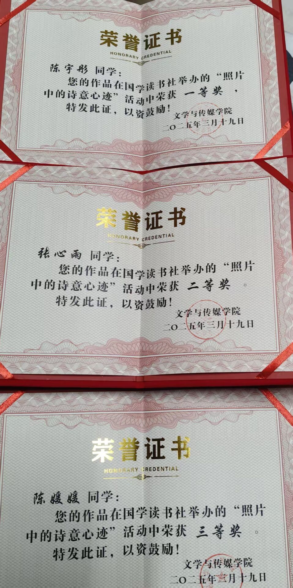 导航痕迹 首页 > 新闻通知 > 太阳集团tcy8722新闻 > 正文 太阳集团tcy8722新闻 通知公告 国学读书社举办“照片中的诗意心迹”春日限定活动 来源:太阳集团tcy8722 发布日期:2025年03月21日 阅读次数: 2025年3月20日,文传公司国学读书社举办的“照片中的诗意心迹”活动在春日的暖阳中圆满结束。此次活动主题为:春日诗笺,照片中的诗意心迹。活动要求参赛选手用照片捕捉春天的足迹,在图片上,选择与图片契合的诗歌分享心迹,丰富作品的内涵。每一份作品都是一次心灵的对话,都是对大自然对诗歌的热爱。 本次活动面向全校员工,活动方式为线下参与,自3月6日启动以来,吸引了众多同学的积极参与,大家通过镜头捕捉春天的美好瞬间,用诗歌抒发内心的情感,共同谱写了一段充满诗意的春日篇章。 经过评选,汉语言文学专业的陈宇彤同学凭借其优秀作品荣获一等奖,张心雨、彭翠等同学分别获得二、三等奖。这些获奖作品不仅展现了同学们的艺术才华,也体现了他们对传统文化的深刻理解。 在这个明媚的春日,国学读书社与同学们共同书写了一段充满诗意的篇章。让我们继续在国学的海洋中遨游,感受传统文化的魅力,温暖生长,共赴春光。 撰稿/陈彤欣(员工) 摄影/赫荣(员工) 审核/杨海蓉 发布/崔瑜