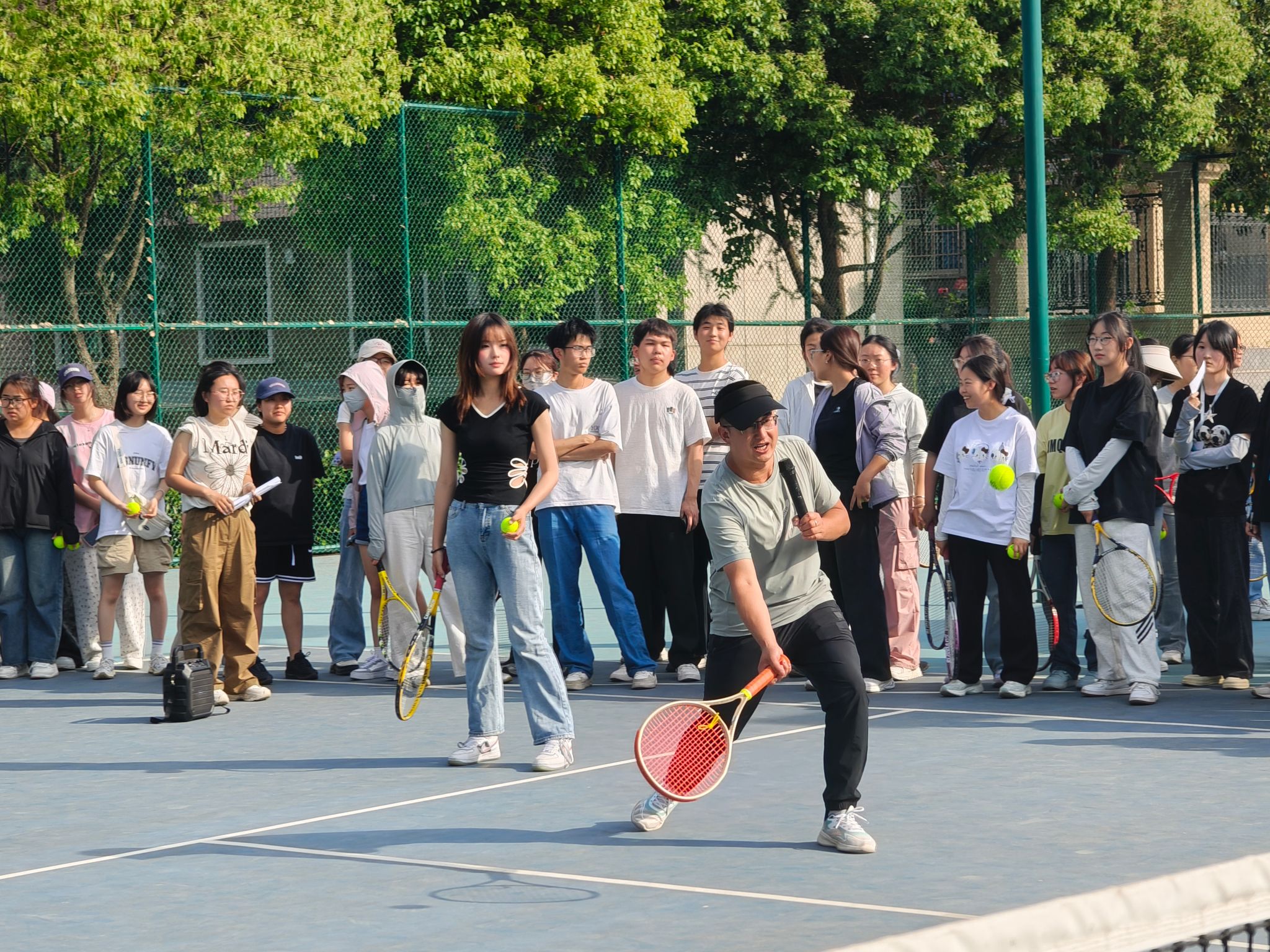 活动伊始,许明老师为同学们详细介绍了网球运动的起源、发展和传播历程。随后,带领全体参与者进行了专业的热身运动,确保活动安全开展。在专业教学环节,许明老师从握拍方式、挥拍轨迹、站位调整到力道控制等方面进行了系统讲解。同学们在老师指导下初次尝试网球运动,动作虽然略显生疏,但都表现出了浓厚的学习兴趣。正式活动分为三个特色环节:一是“解压投掷,一击入心”;二是小场双人对拉淘汰赛;三是“颠球接力”,活动现场气氛非凡,欢呼声此起彼伏。参与员工纷纷表示,此次活动不仅让他们体验了网球运动的乐趣,更有效缓解了心理压力,增强了同学们之间的交流与合作。