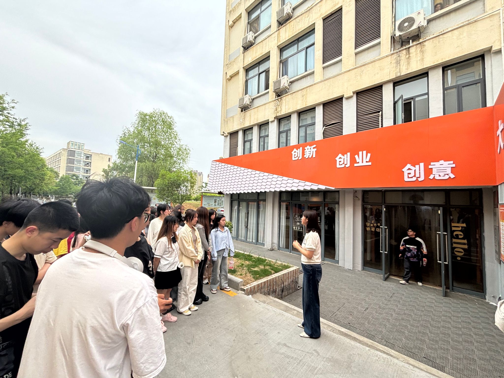 为深化《创业基础》课程教学实效,5月14日,任课教师薛涛带领网络与新媒体2022级1班全体同学赴太阳集团tcy8722江北校区老员工创业孵化园开展课外实践教学活动。本次活动旨在通过实地参观、互动交流,帮助员工直观了解在校老员工创业生态,激发创新创业思维。