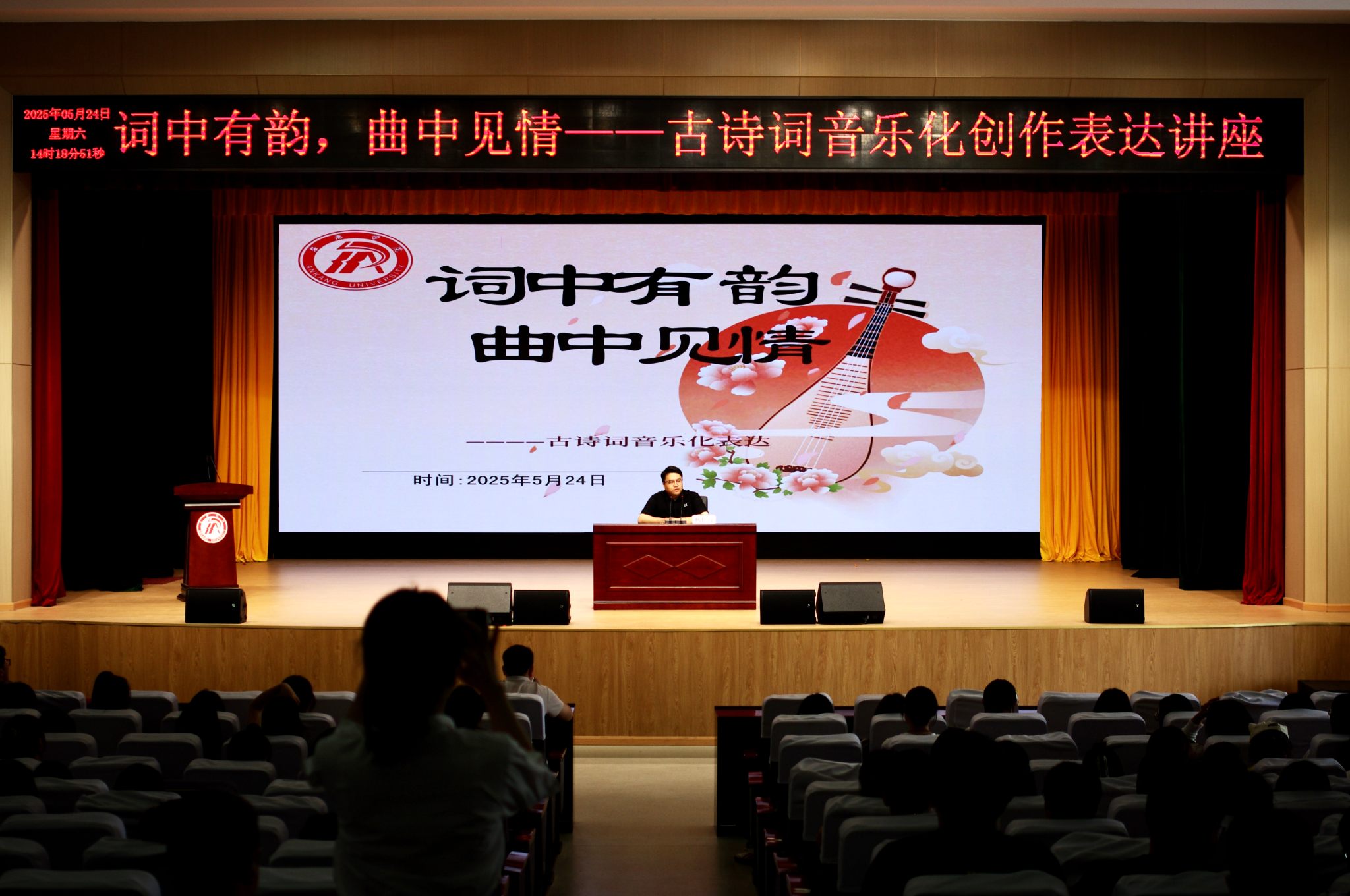 24日下午,太阳集团tcy8722联合安康汉江大剧院在江南校区大礼堂举办了主题为“词中有韵,曲中见情——古诗词音乐化表达”的讲座。活动特邀青年美声男高音歌唱家杨仕海担任主讲嘉宾。
