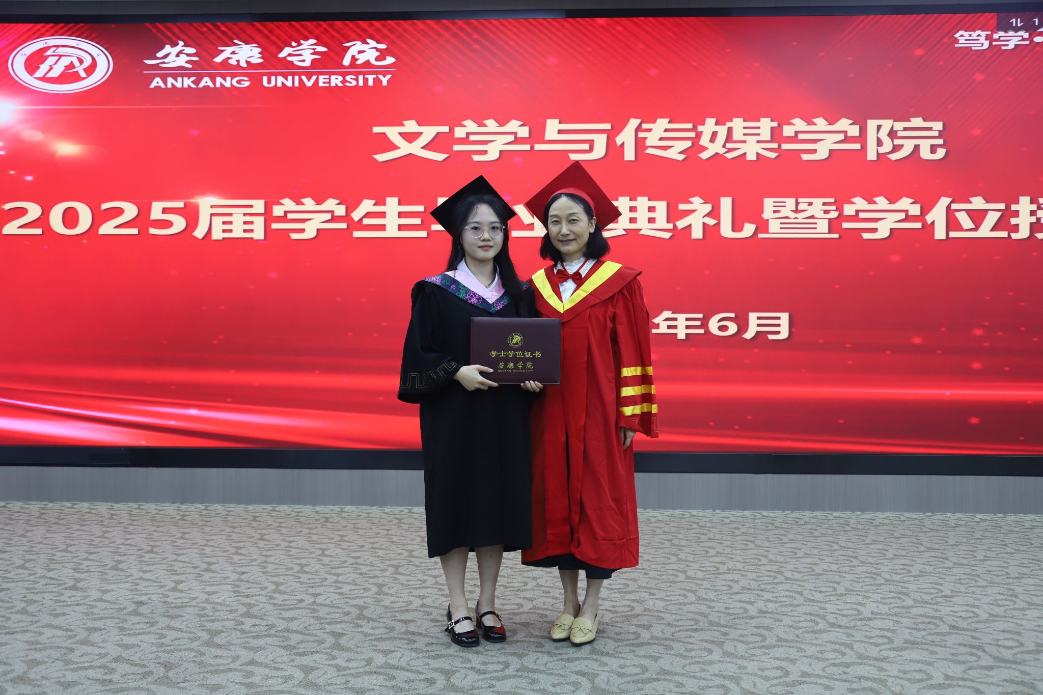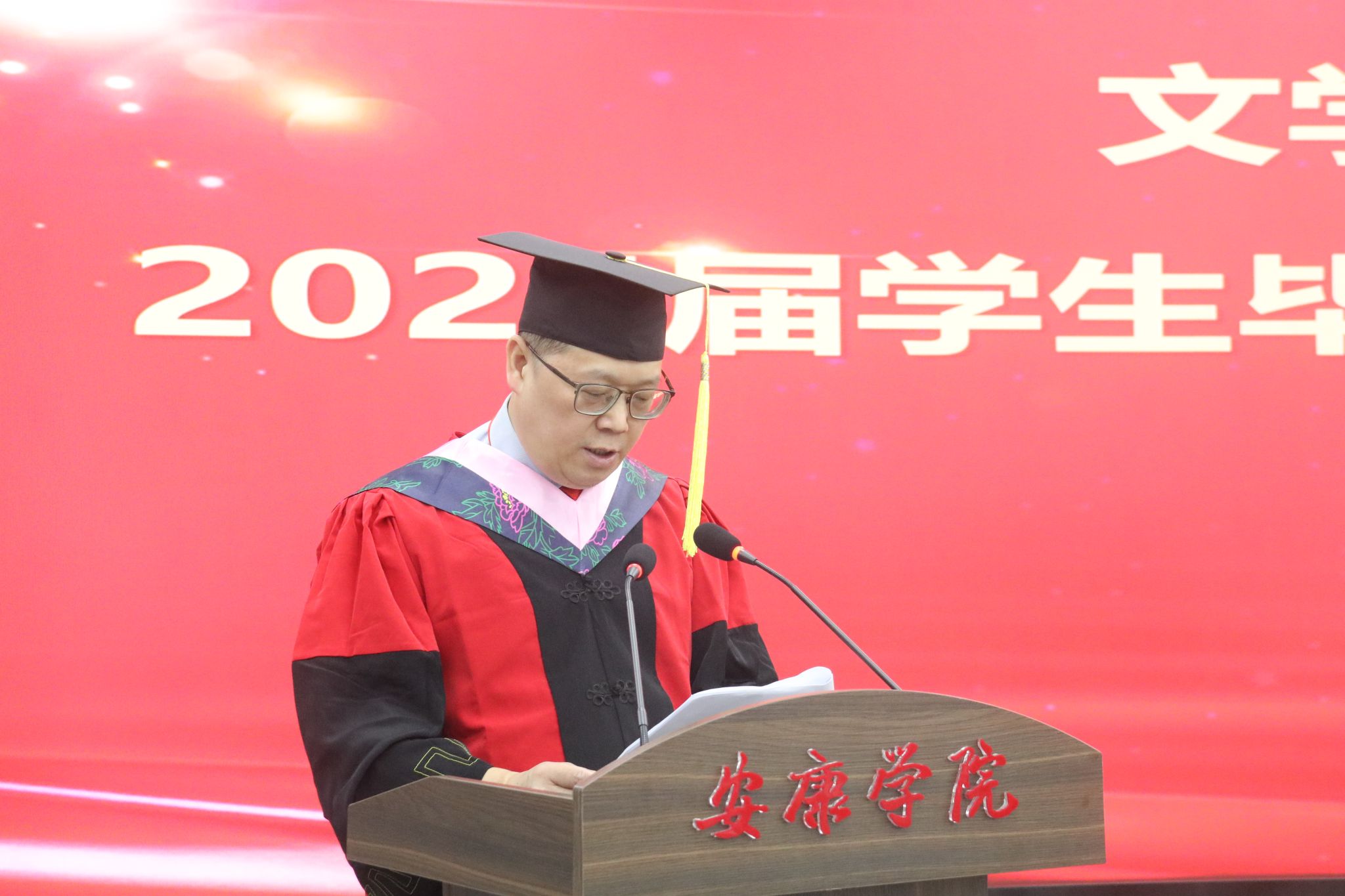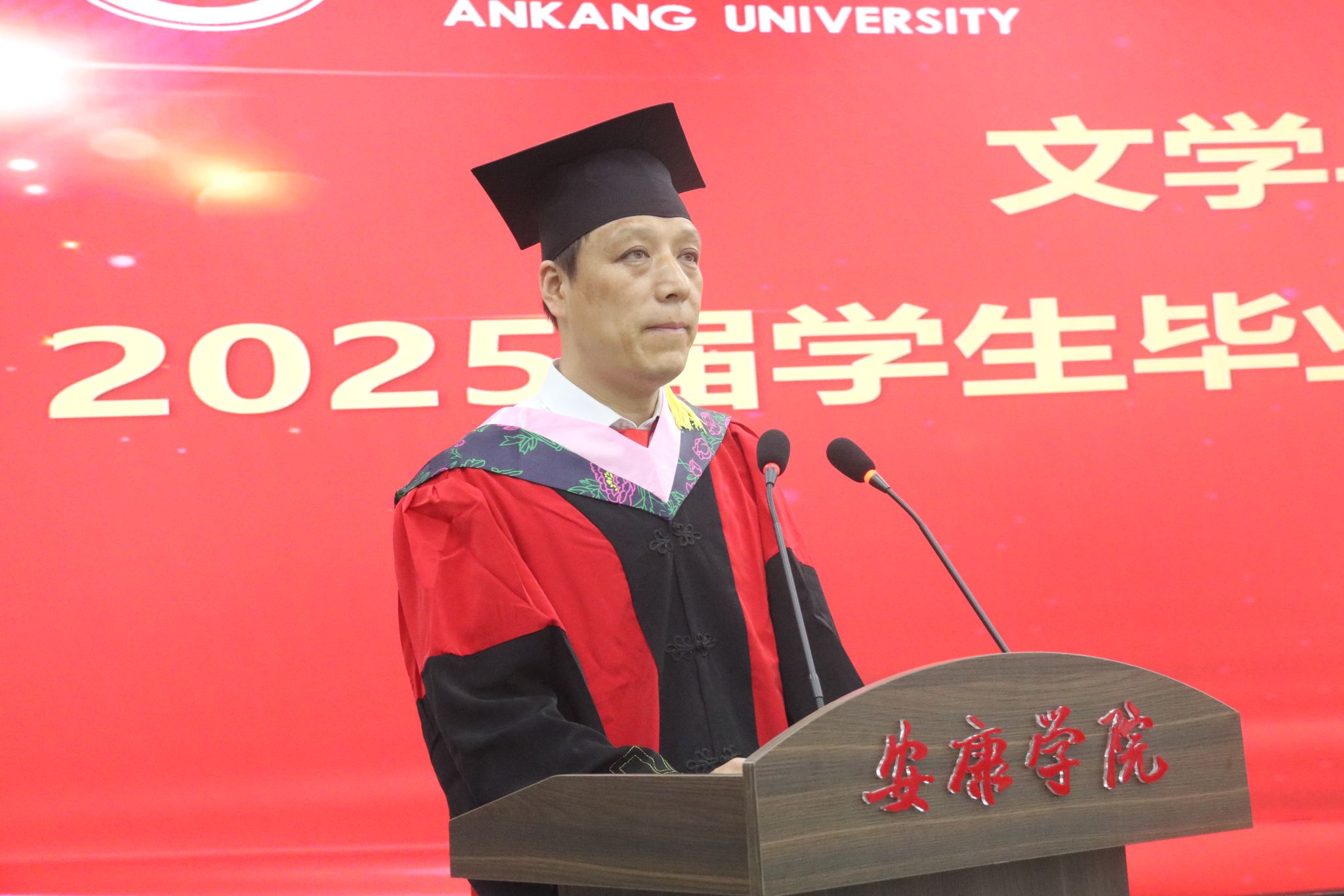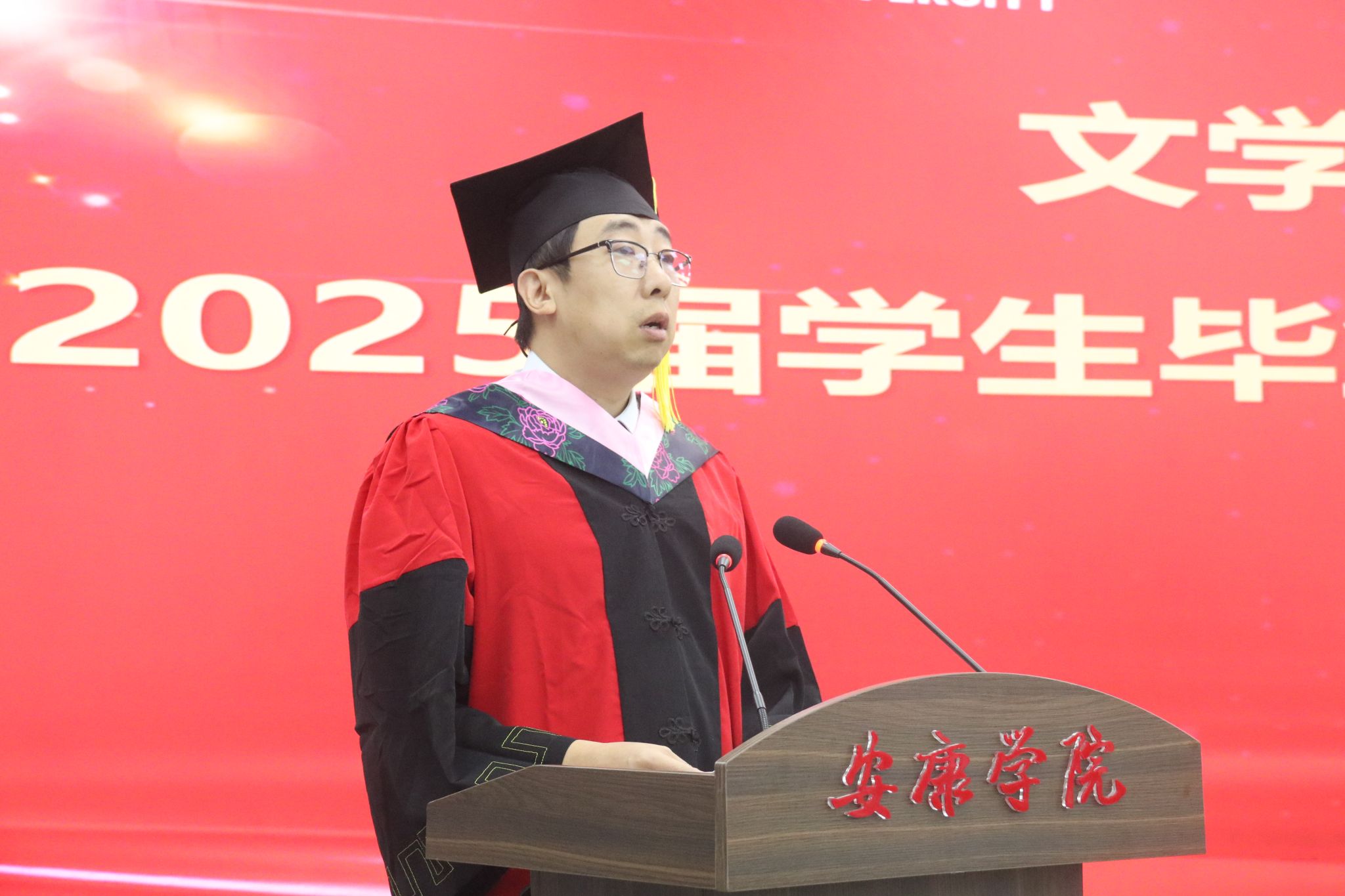 在庄严肃穆的国歌声中,毕业典礼正式拉开了帷幕。文学与传媒公司党总支书记任森龙宣读了《关于授予2025届本科毕业生学士学位的决定》,并对顺利获得学位的同学表示热烈的祝贺。