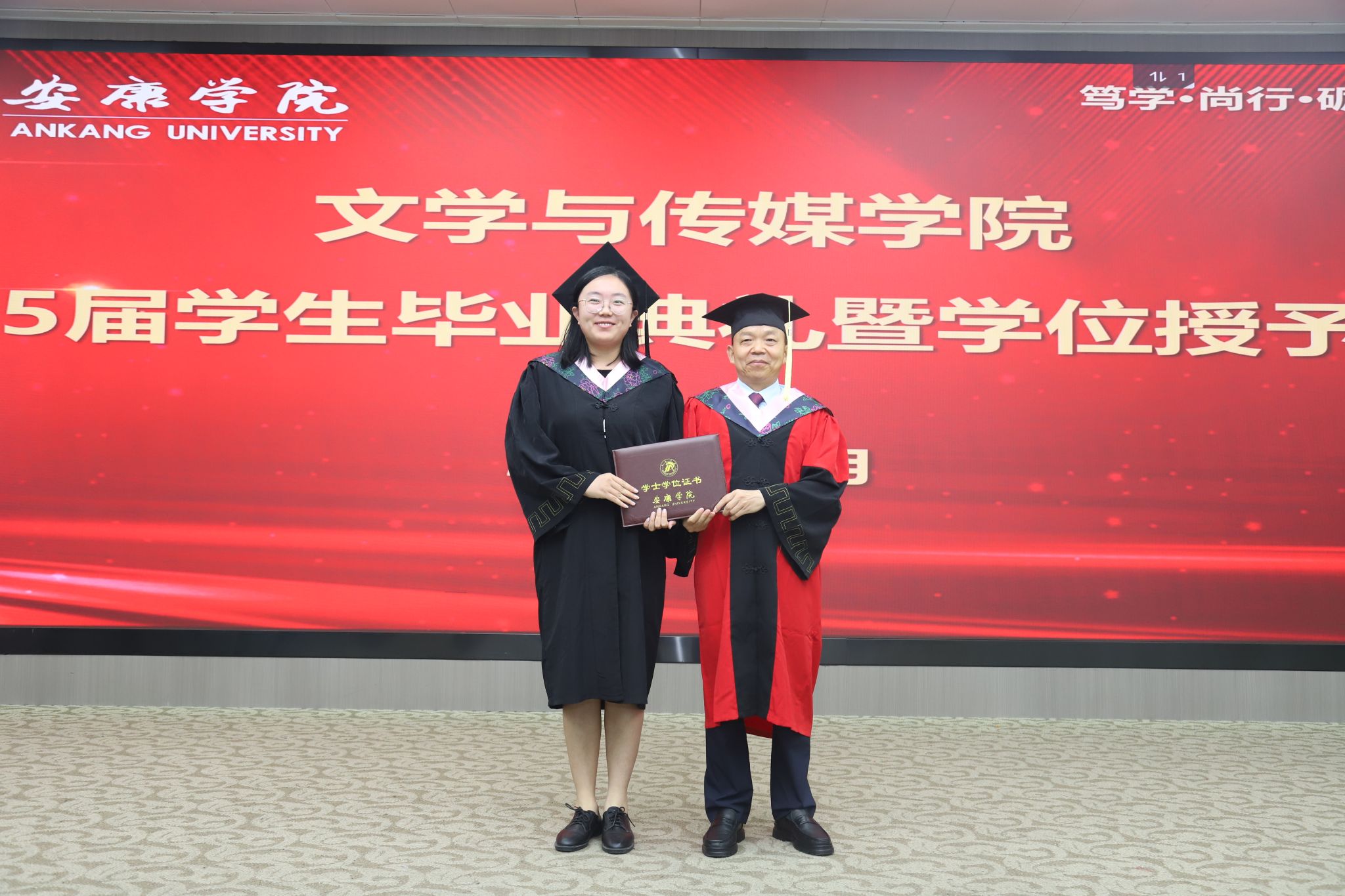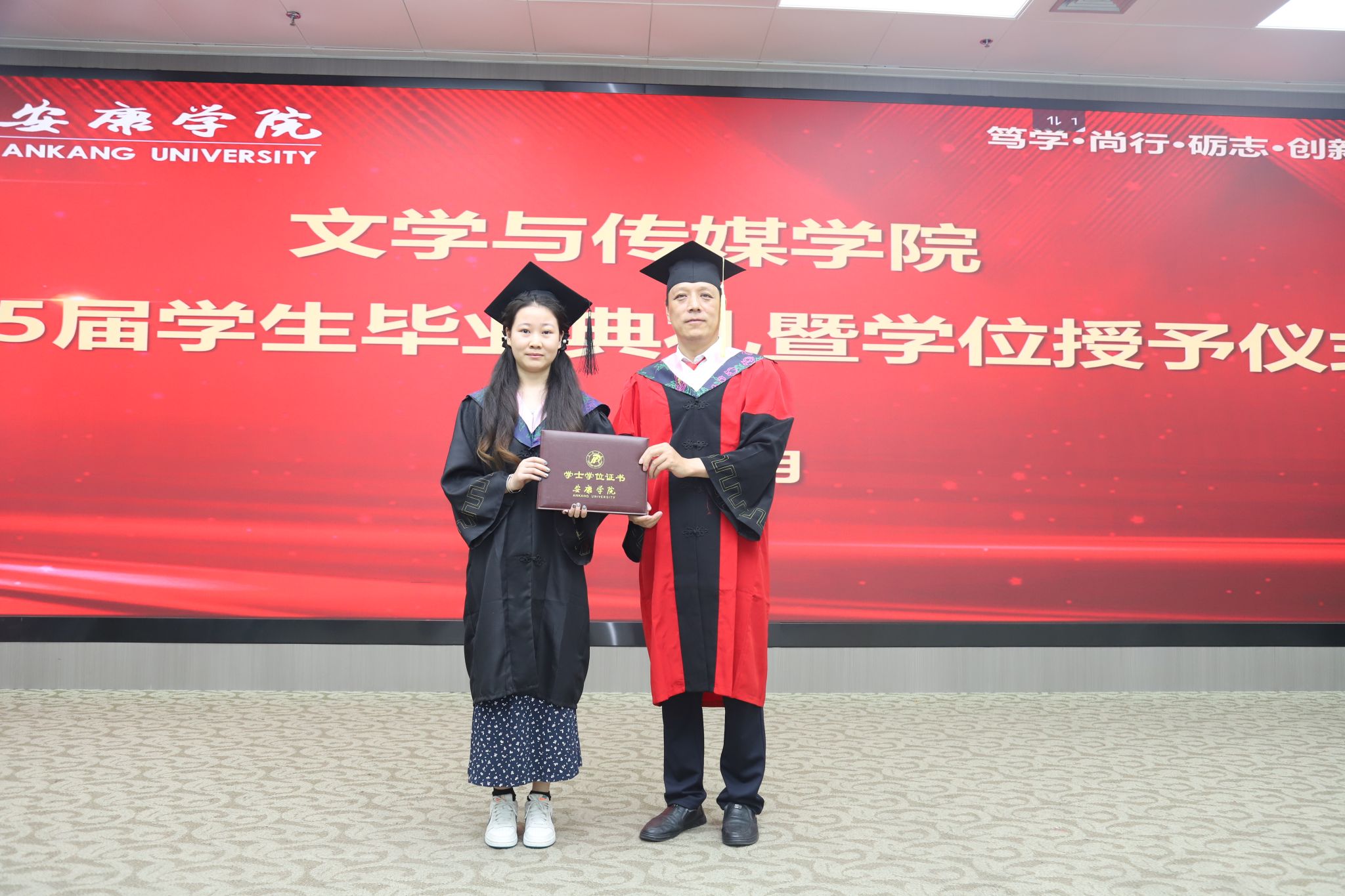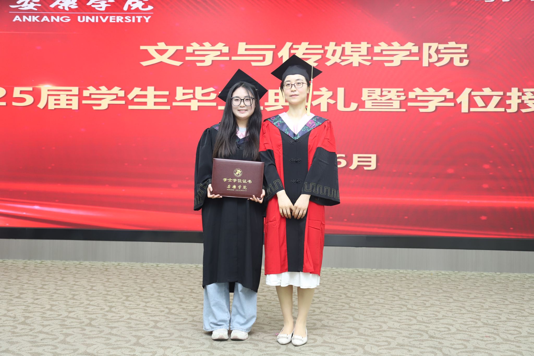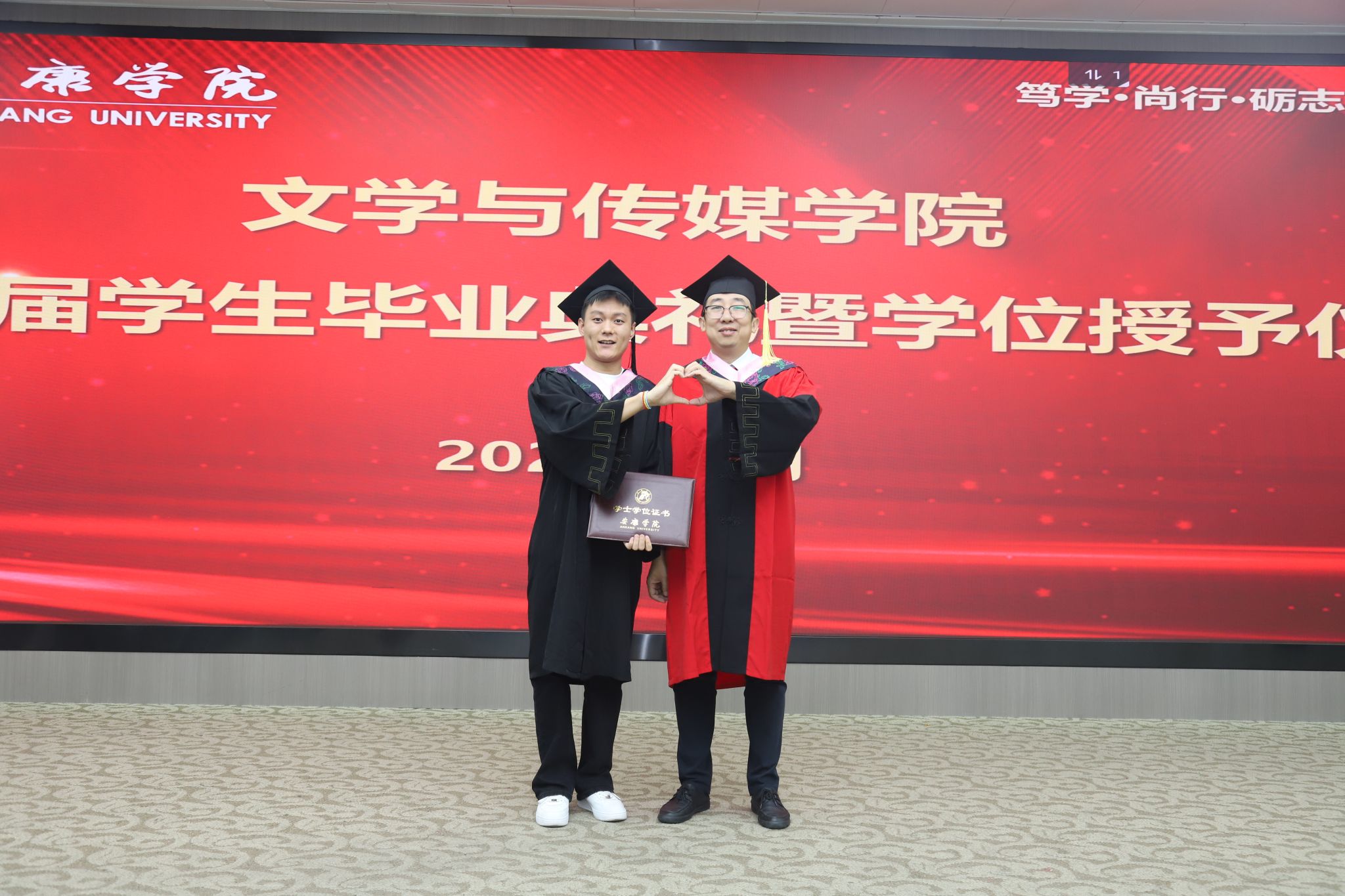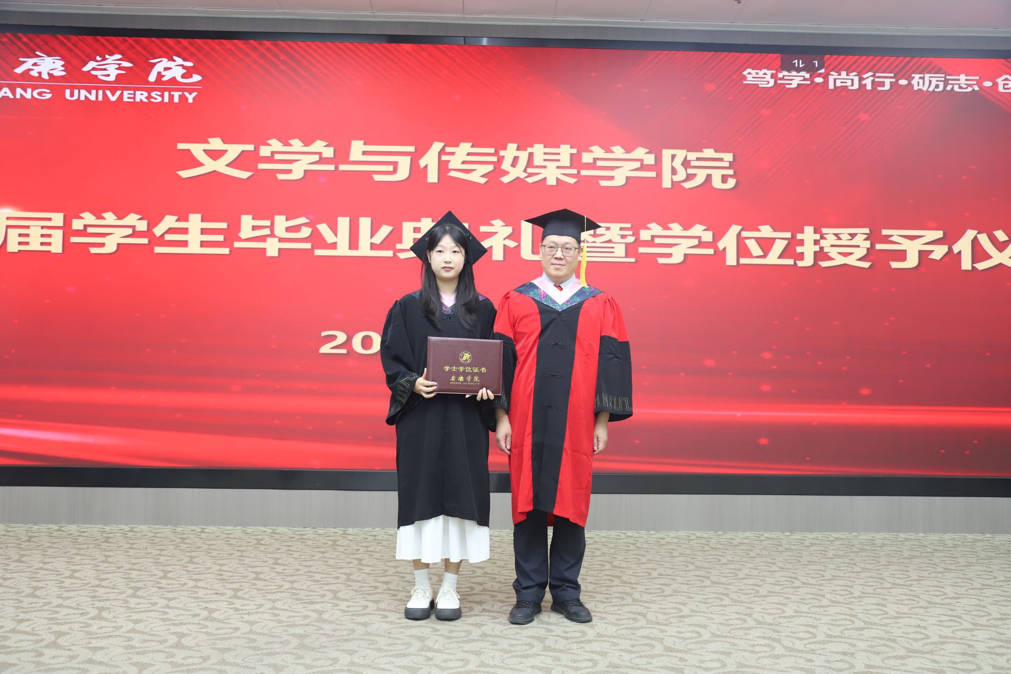 在庄严肃穆的国歌声中,毕业典礼正式拉开了帷幕。文学与传媒公司党总支书记任森龙宣读了《关于授予2025届本科毕业生学士学位的决定》,并对顺利获得学位的同学表示热烈的祝贺。