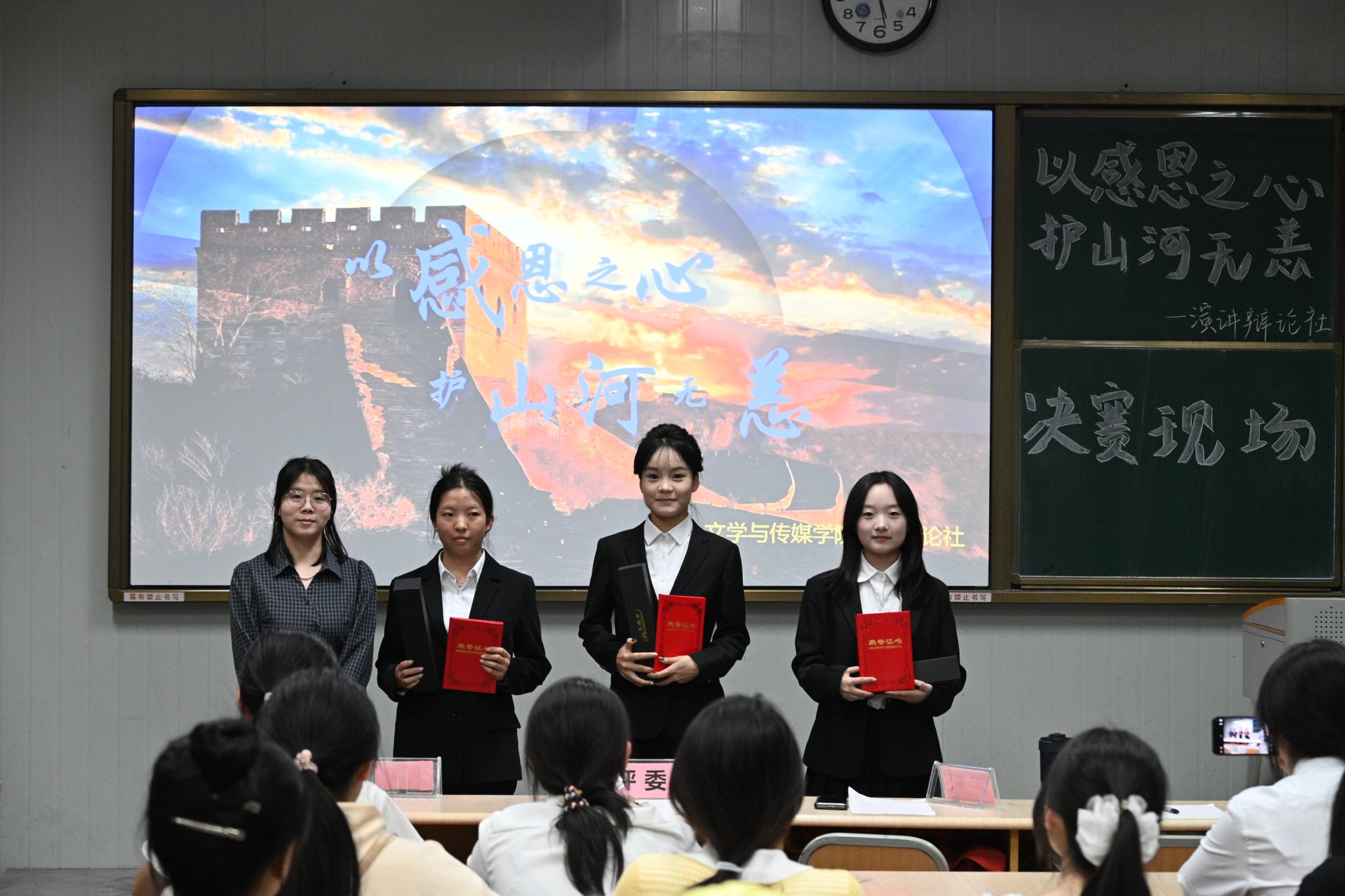 为了充分展现公司老员工的文明素养,引导员工体悟感恩,增强社会责任感,以青春力量守护家国安宁,10月16日下午四时,演讲辩论社在江南校区10号楼1023教室举行“以感恩之心,护山河无恙”主题演讲比赛。文学与传媒公司党总支副书记侯红艳、2024级辅导员刘言军、2025级辅导员喻言、演讲辩论社指导老师余珊担任评委。演讲辩论社袁萌同学主持比赛。