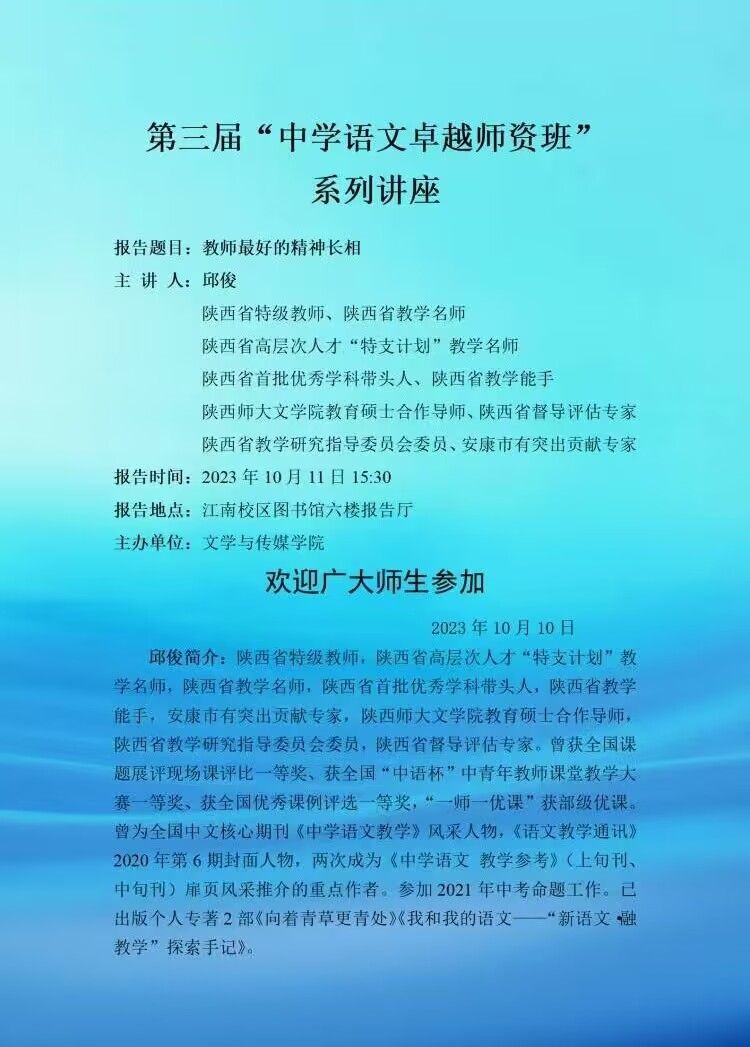 导航痕迹 首页 > 新闻通知 > 通知公告 > 正文 太阳集团tcy8722新闻 通知公告 第三届“中学语文卓越团队班”系列讲座之一 来源:太阳集团tcy8722 发布日期:2023年10月10日 阅读次数: